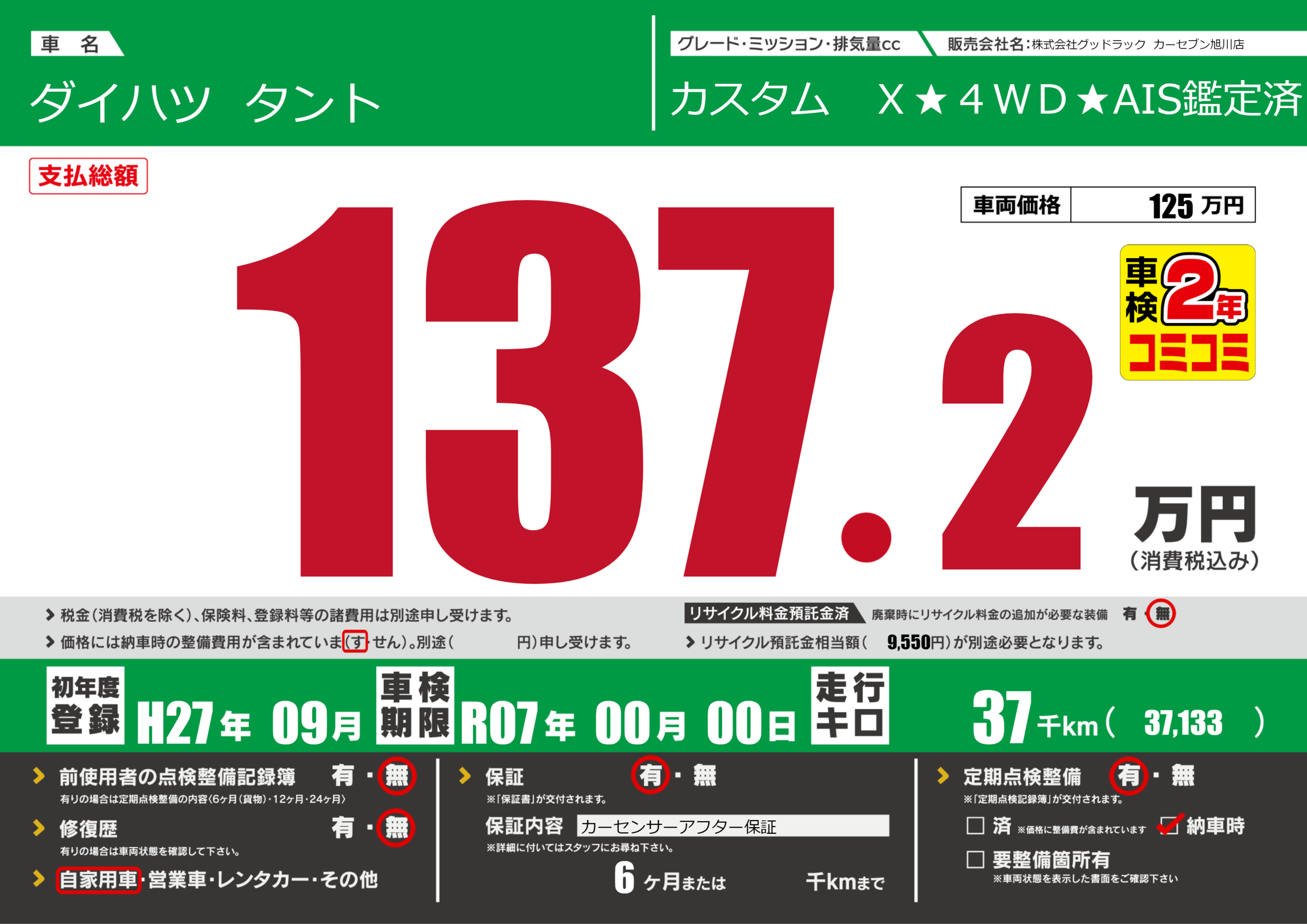 保証内容(カーセンサーアフター保証) 6ヶ月または千km