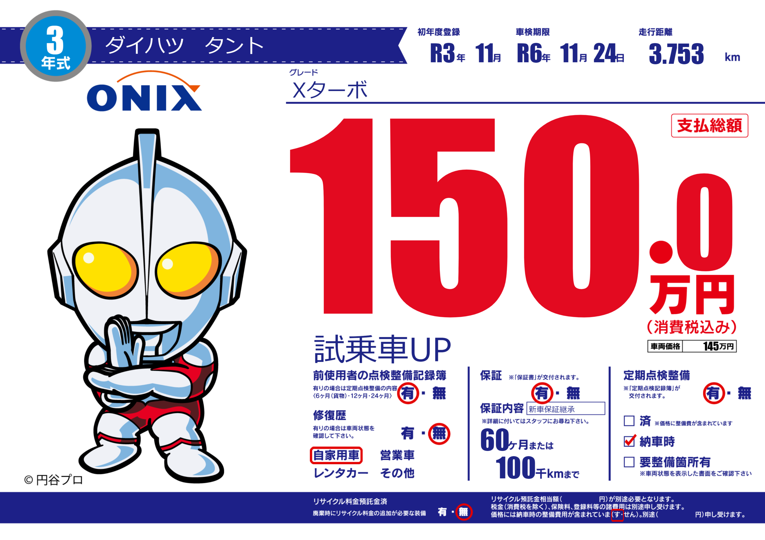 | 走行キロ | 0.3万km | 初年度登録 | R3年11月 |