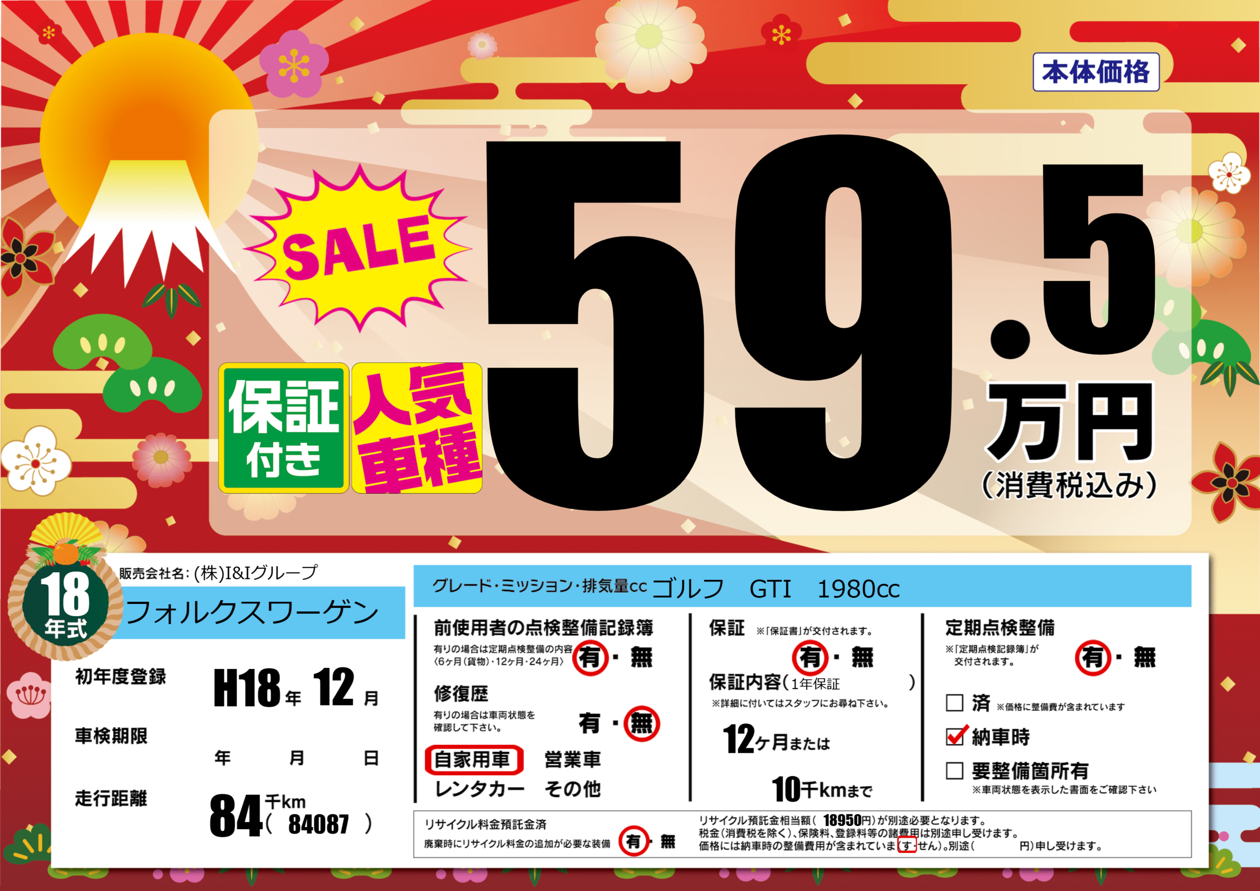 | 車名 | フォルクスワーゲン | グレード ミッション 排気量 |
