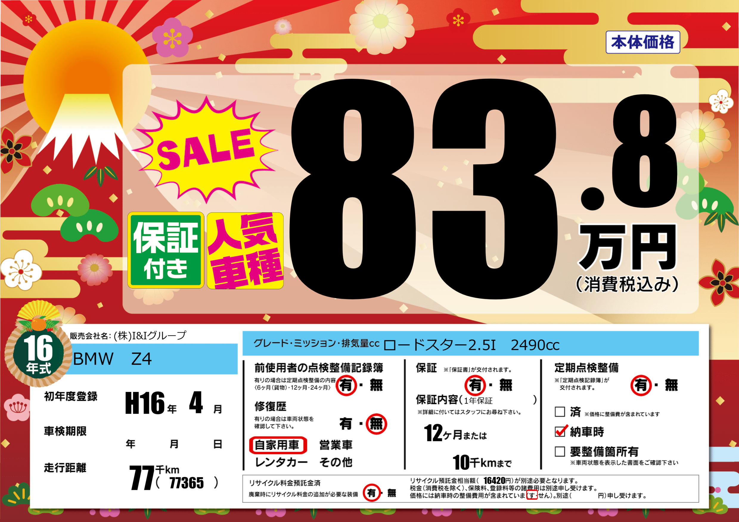| 車名 | BMW Z4 | グレード ミッション 排気量 |