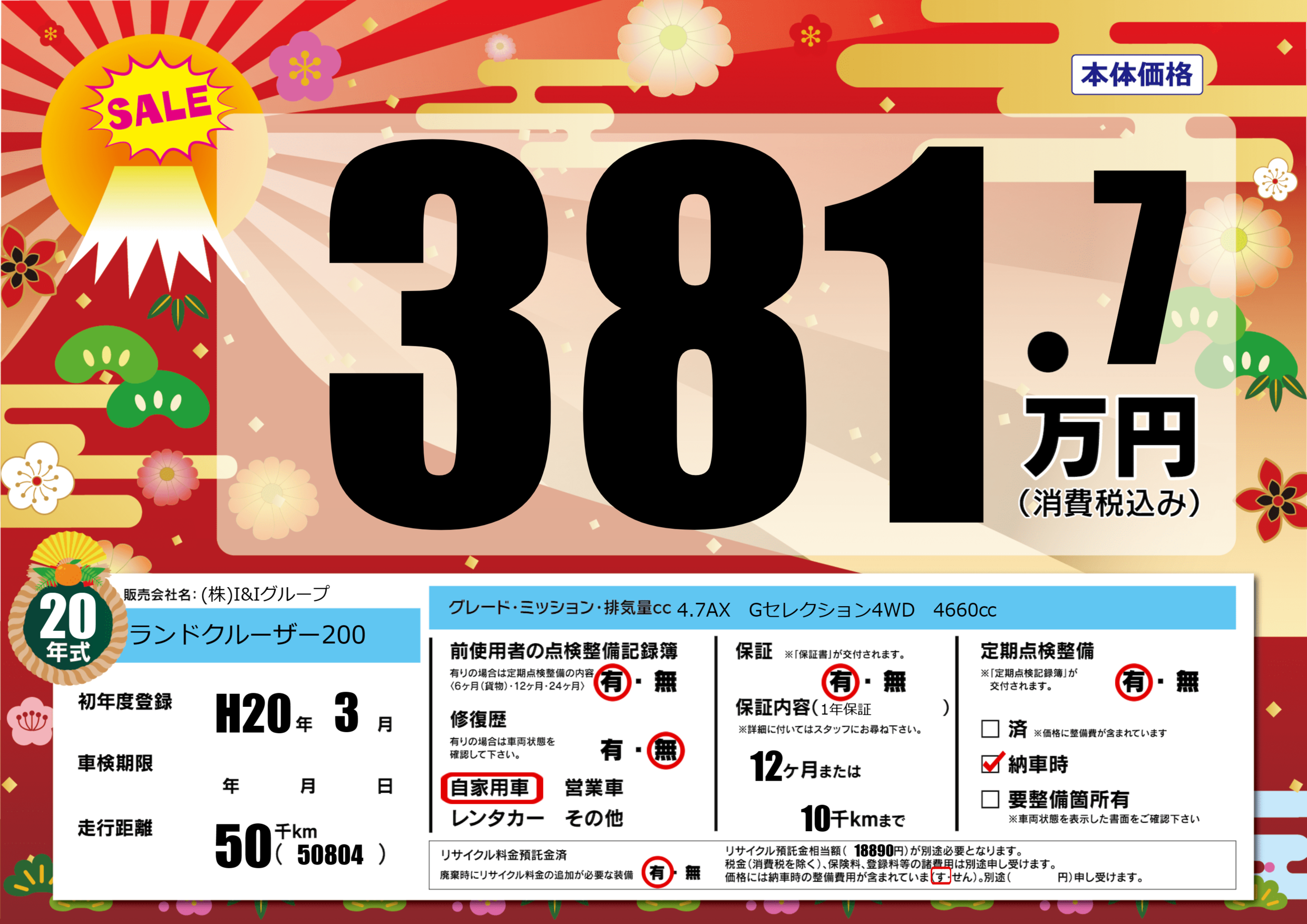 | 車名 | ランドクルーザー200 | グレード ミッション 排気量 |