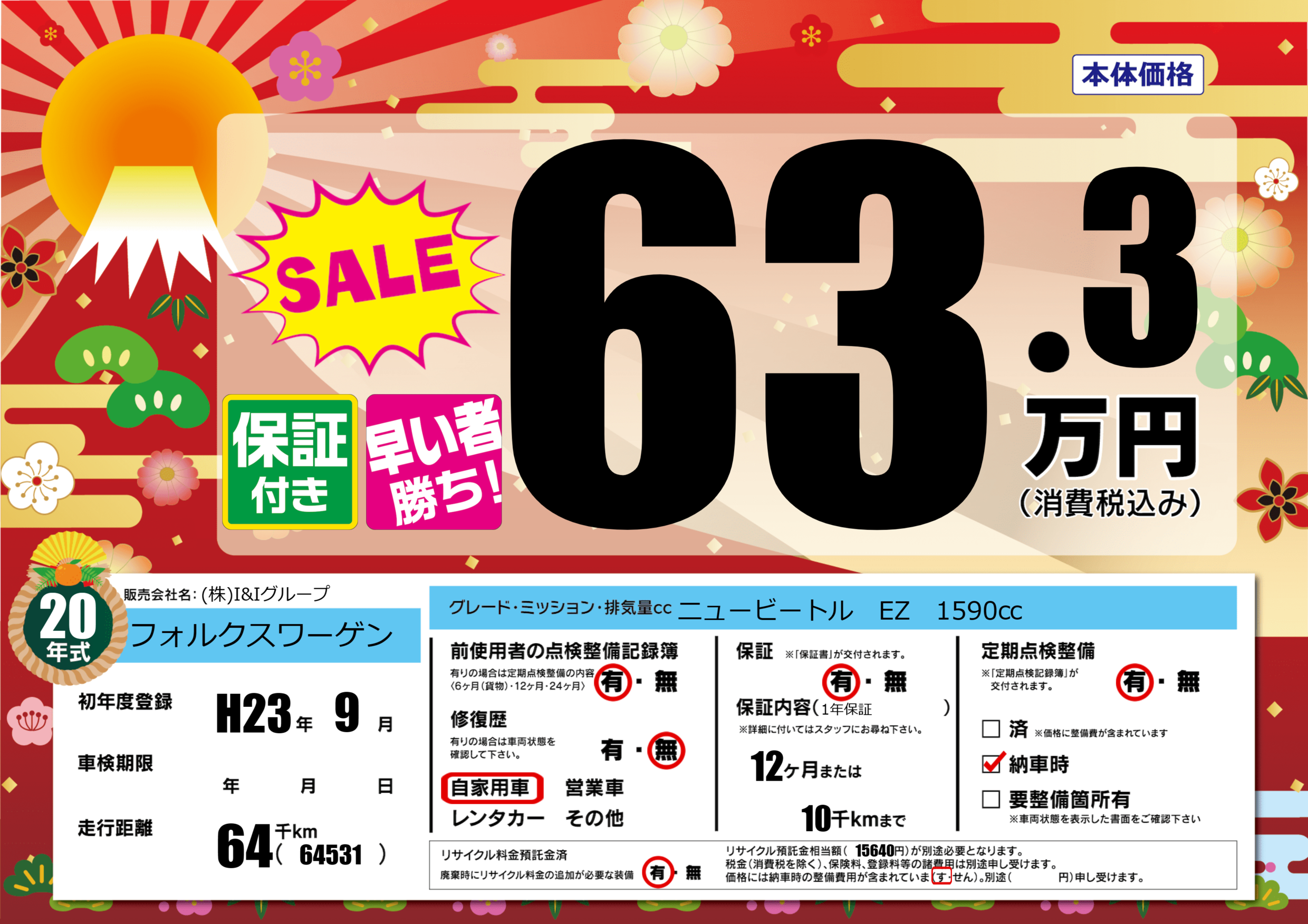 保証付き 保証内容(1年保証) 12ヶ月または10千km |