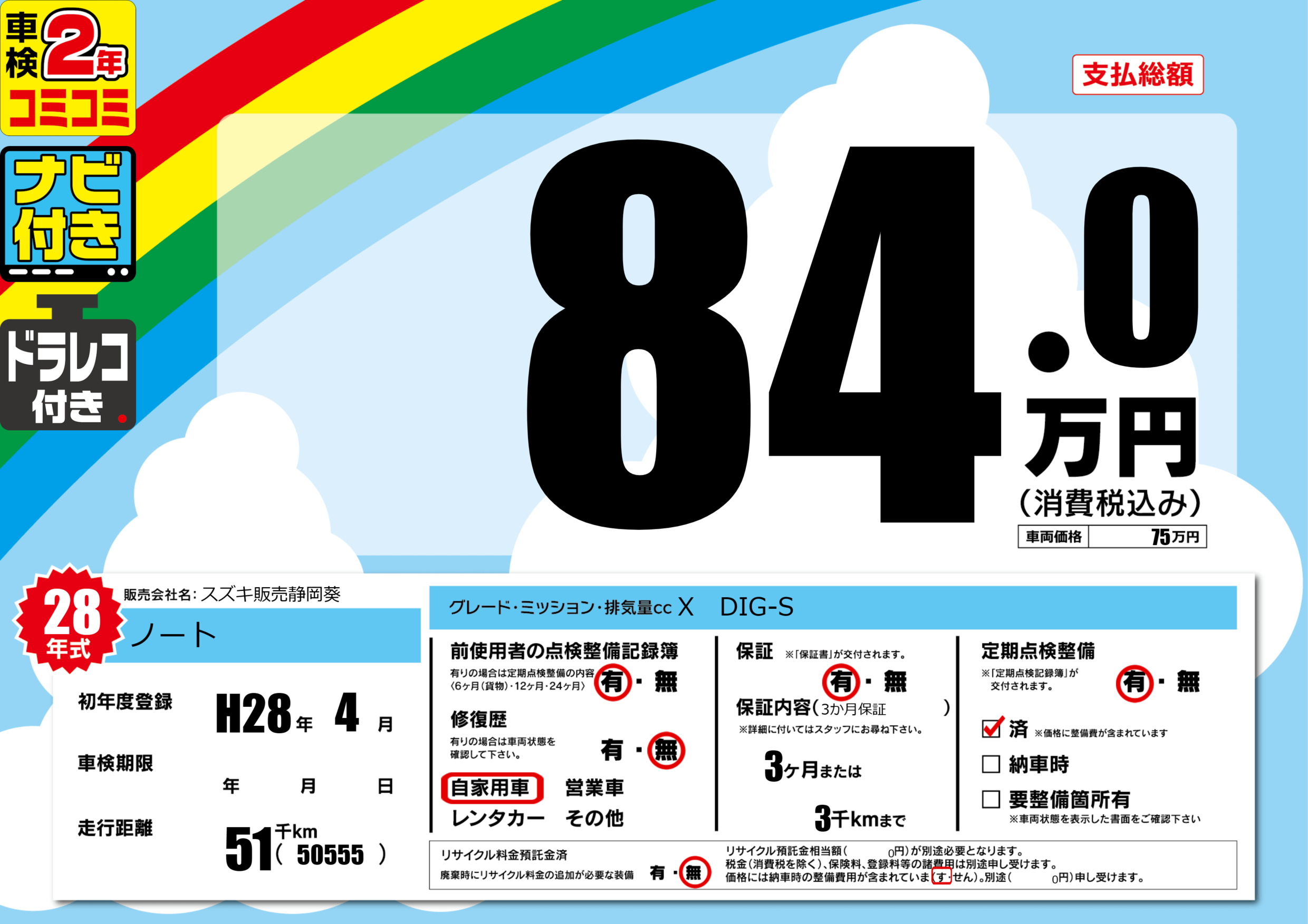 | 定期点検整備 | 定期点検整備あり 定期点検整備済み | ||