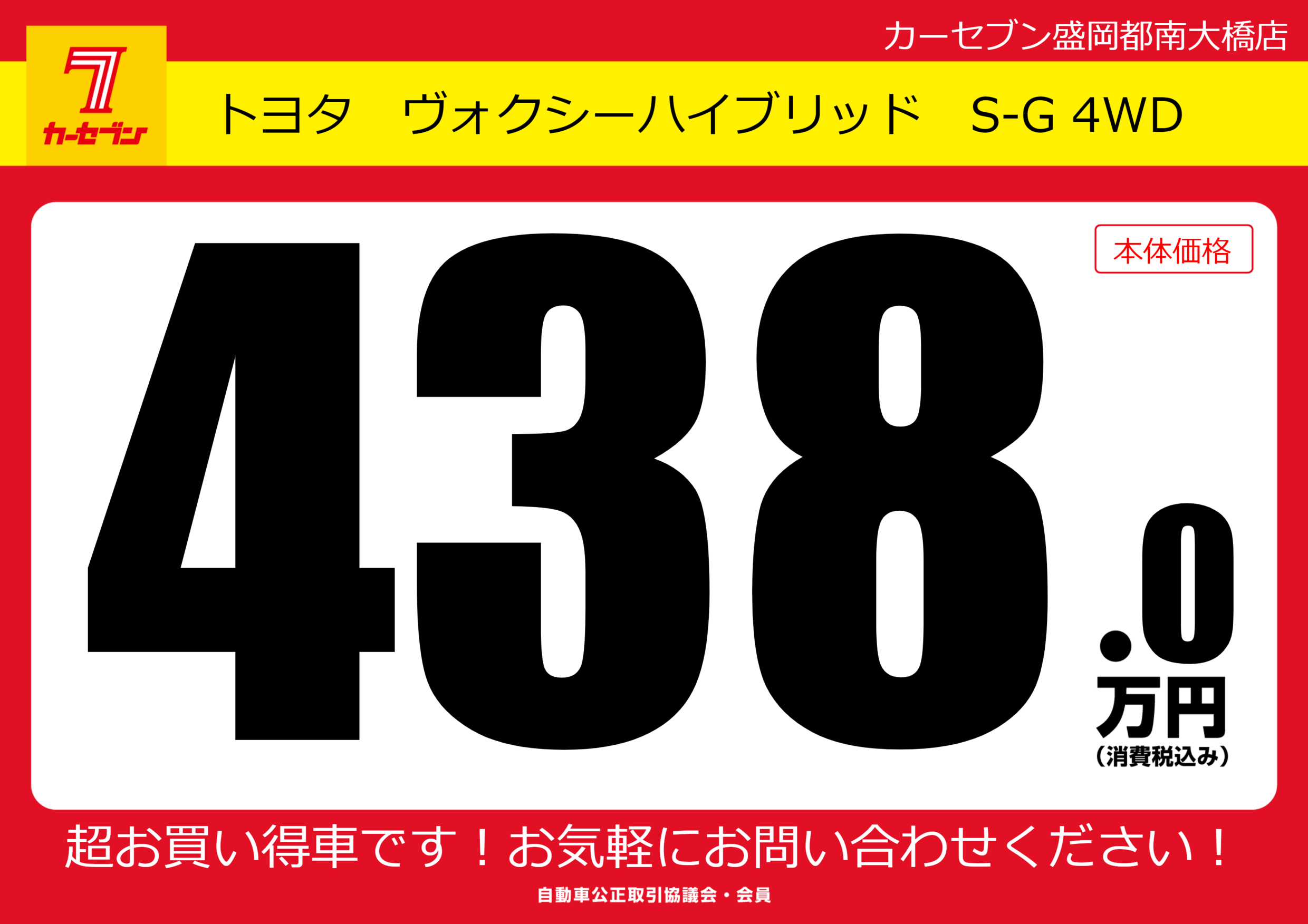 | 車名 | トヨタ ヴォクシーハイブリッド S-G 4WD | グレード ミッション 排気量 |