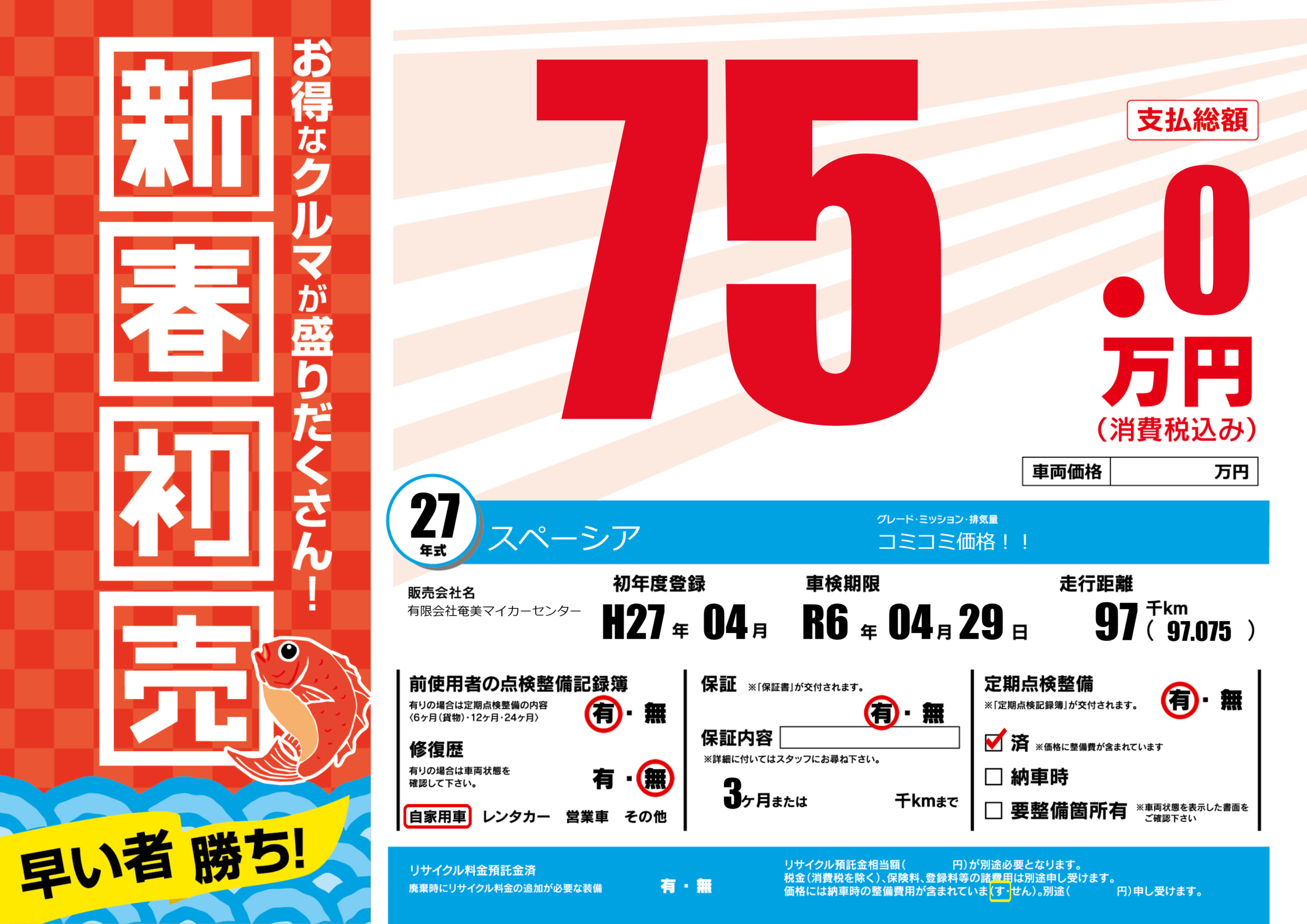 | 定期点検整備 | 定期点検整備あり 定期点検整備済み | ||
