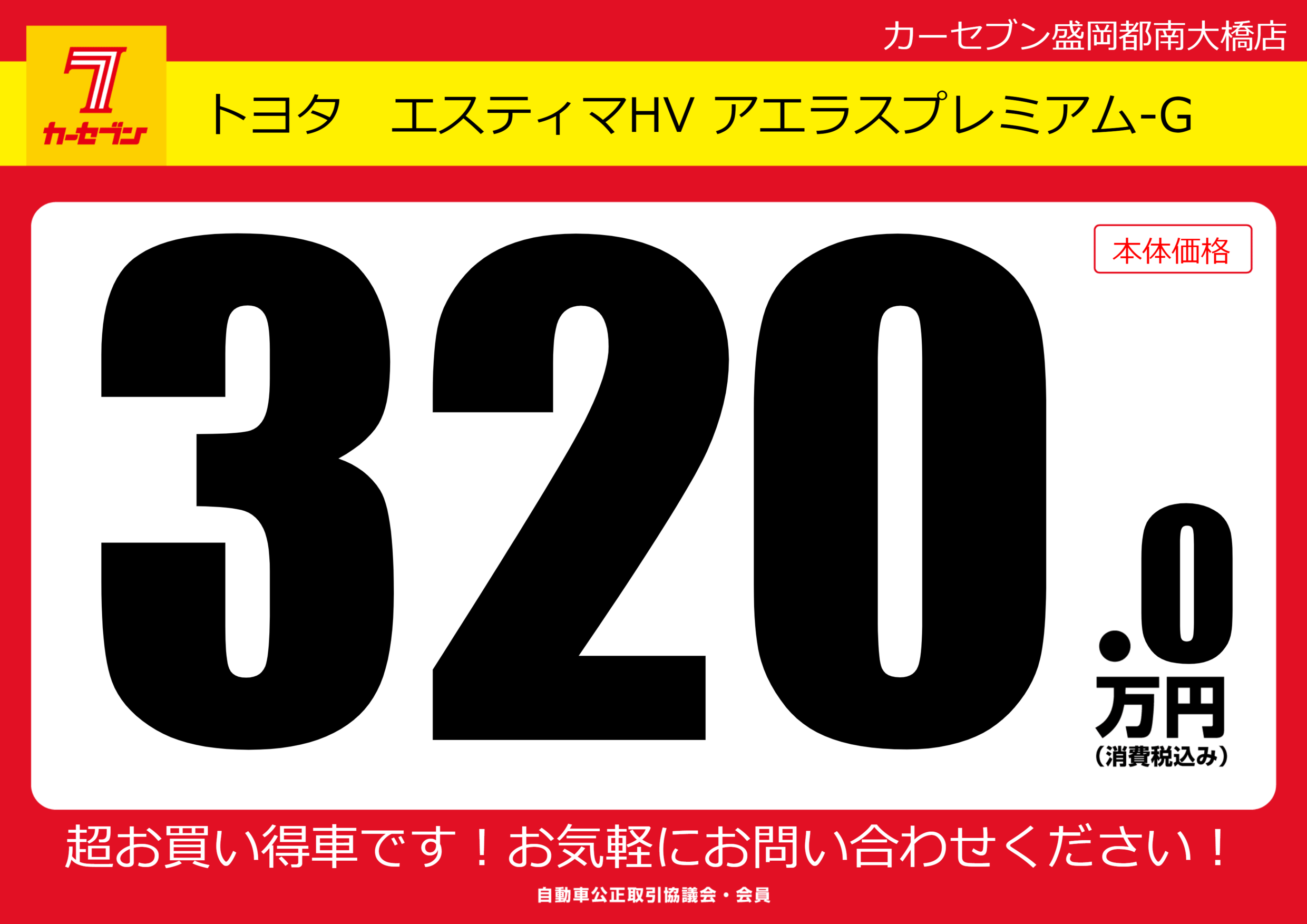| 車名 | トヨタ エスティマHV アエラスプレミアム-G | グレード ミッション 排気量 |