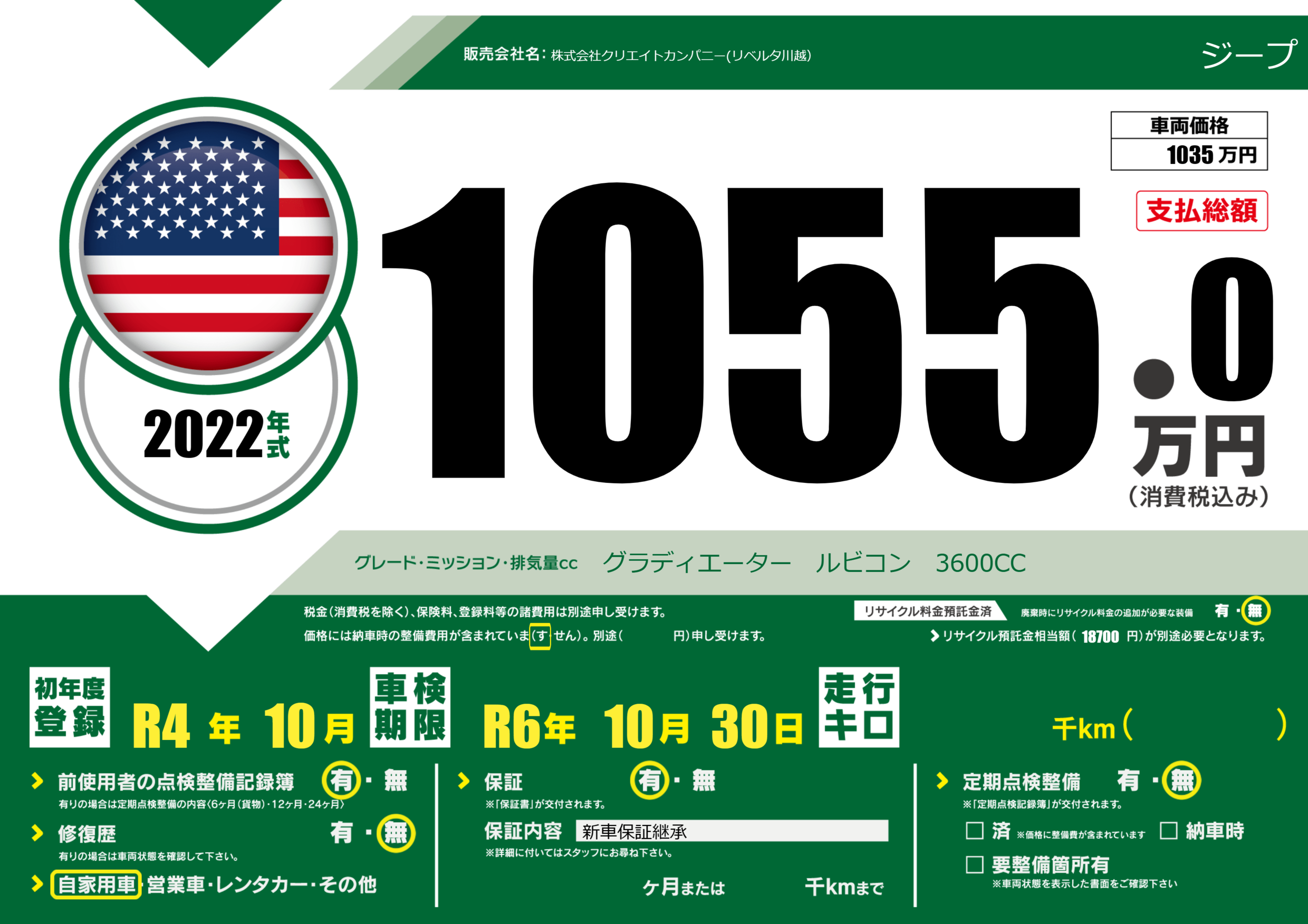 | 走行キロ | - | 初年度登録 | R4年10月 |