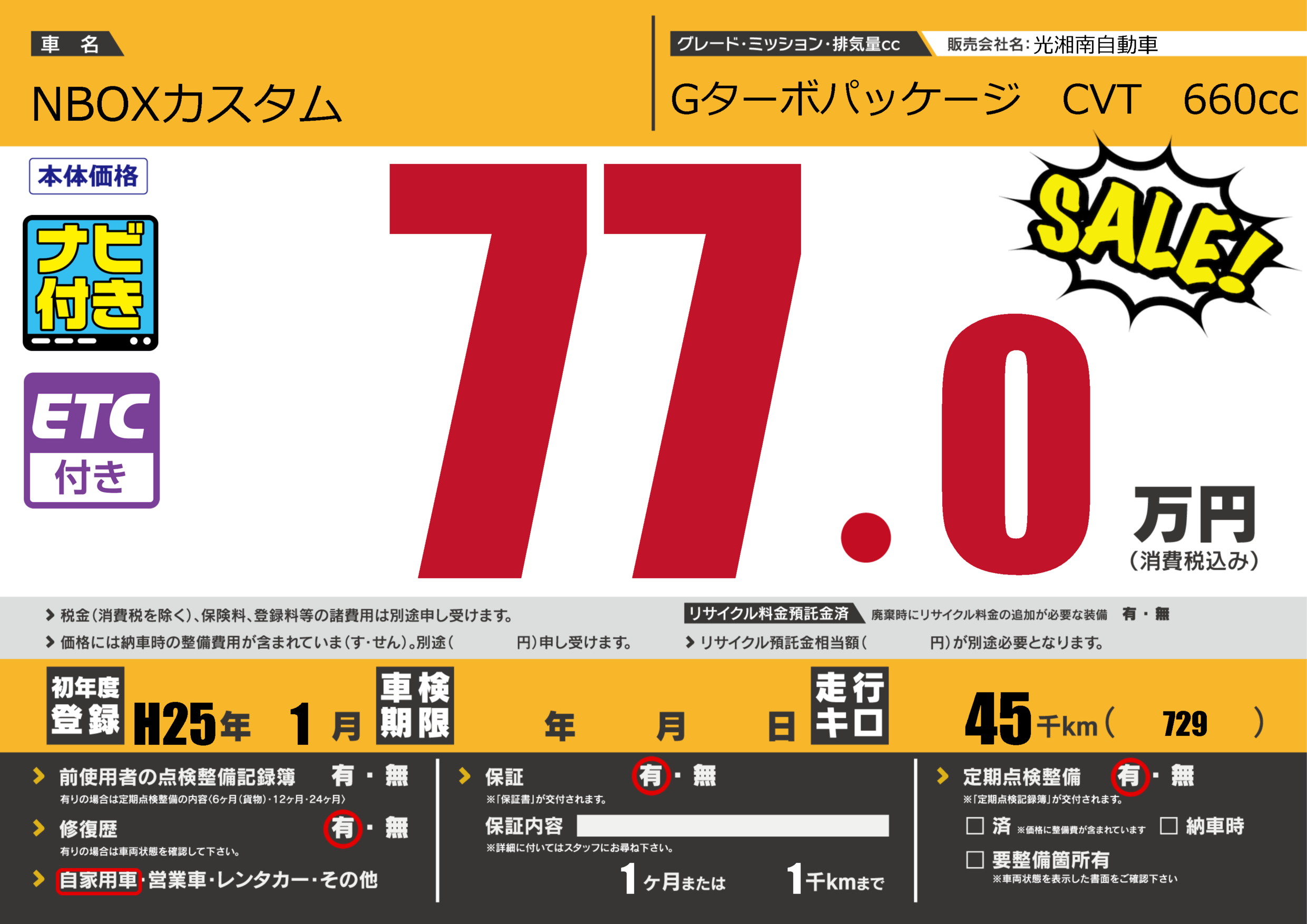| 車検制限 | - 年 - 月 - 日 | ||