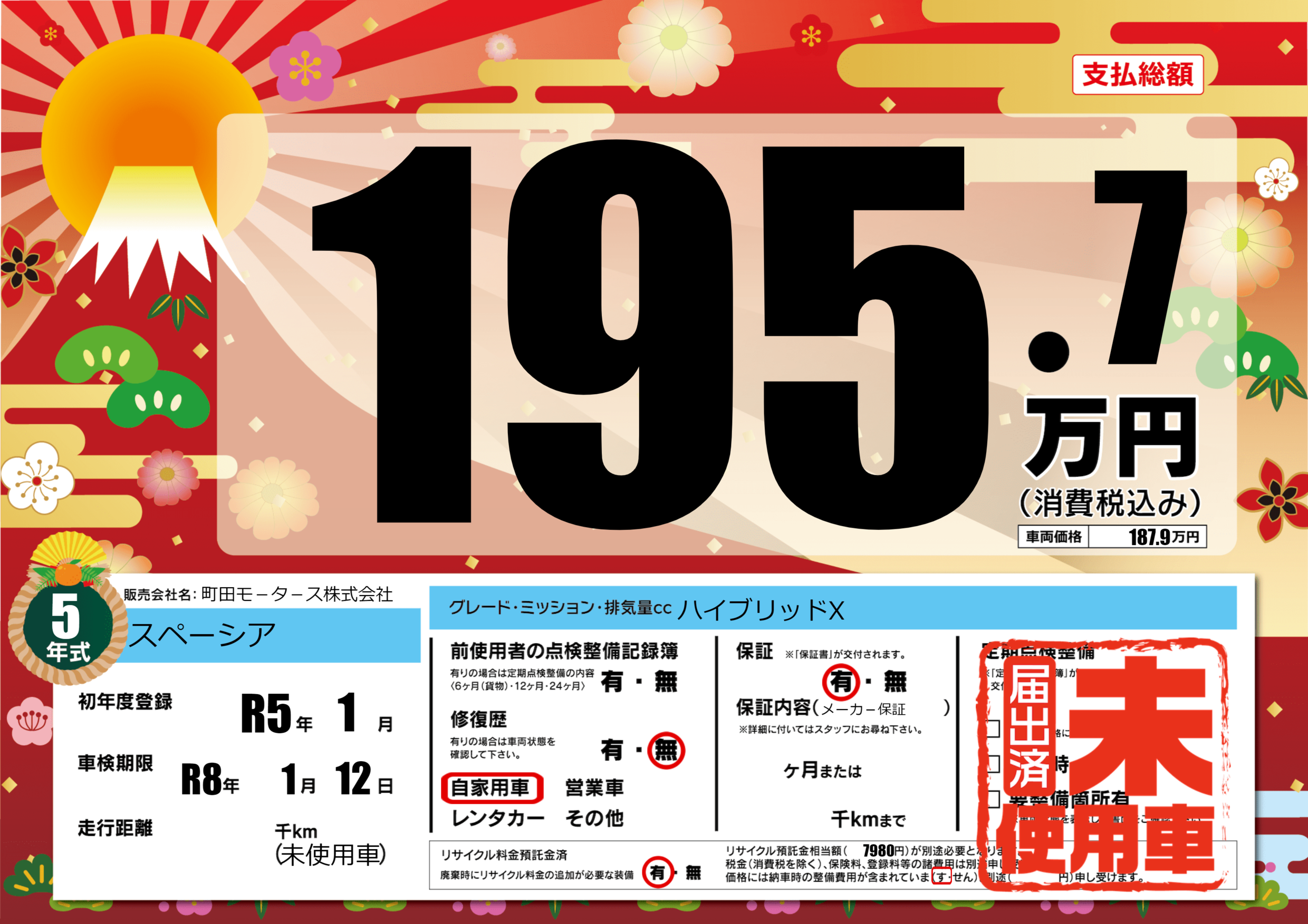 | 走行キロ | - | 初年度登録 | R5年1月 |