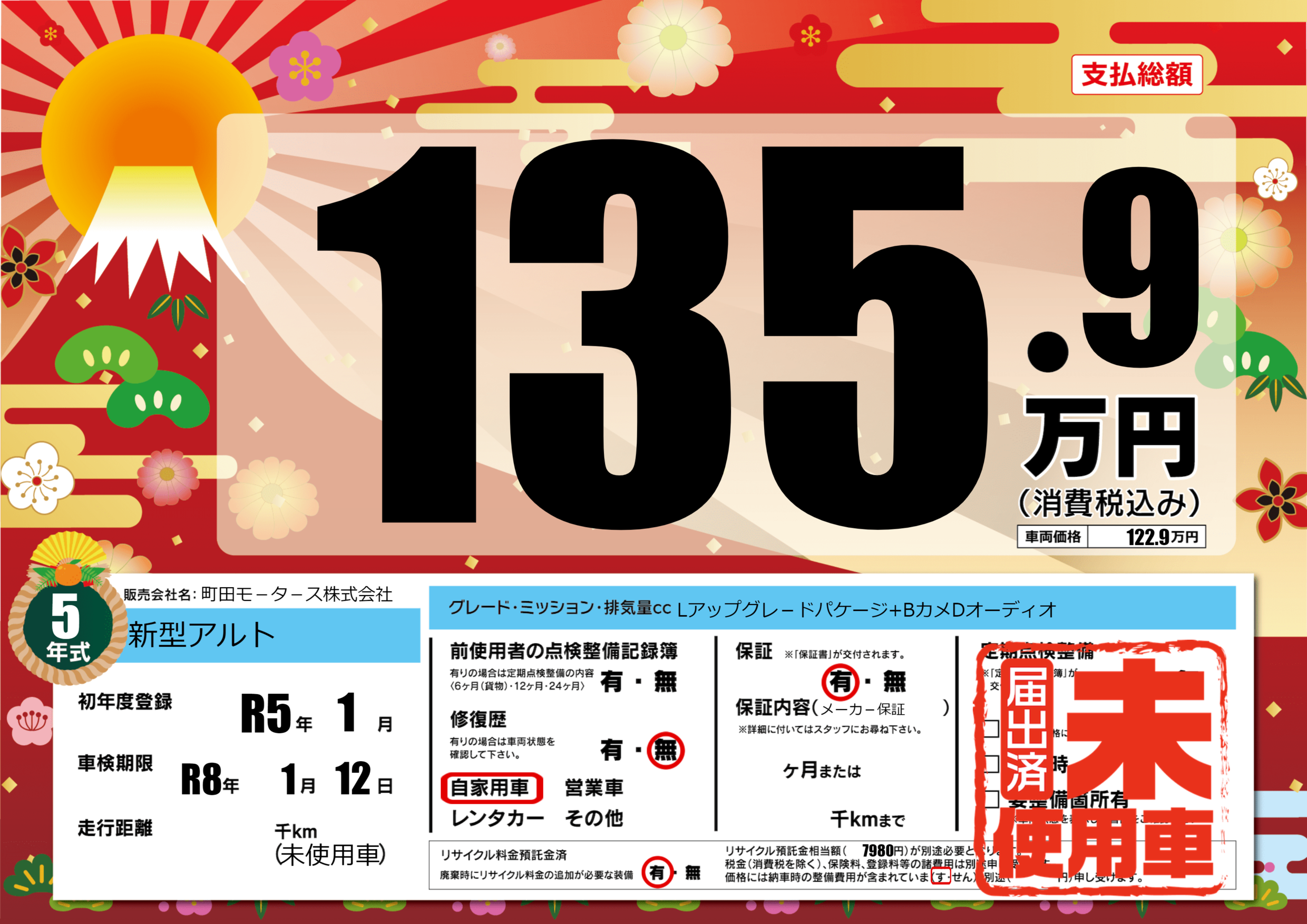 | 走行キロ | - | 初年度登録 | R5年1月 |