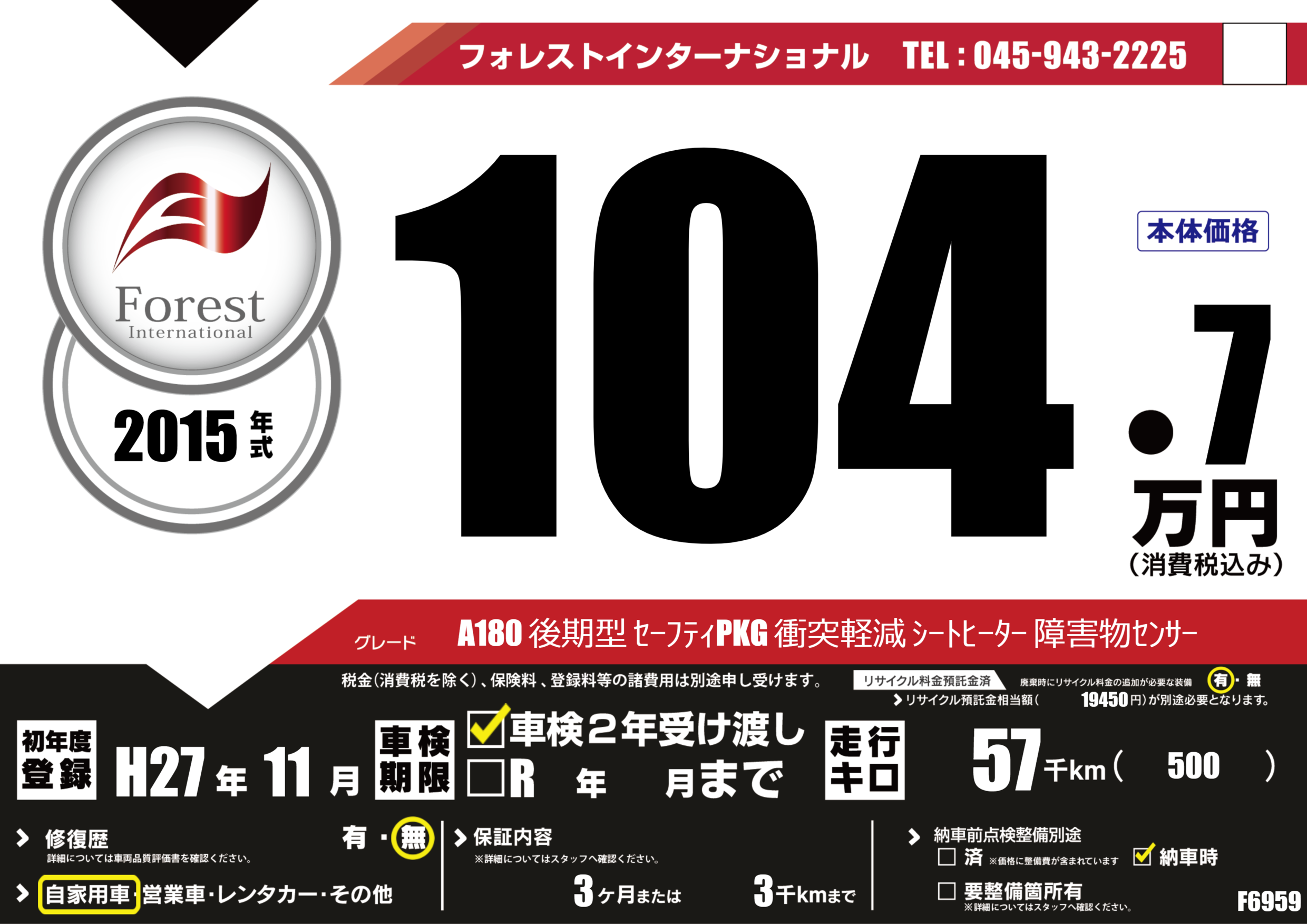 初年度登録 H27年11月