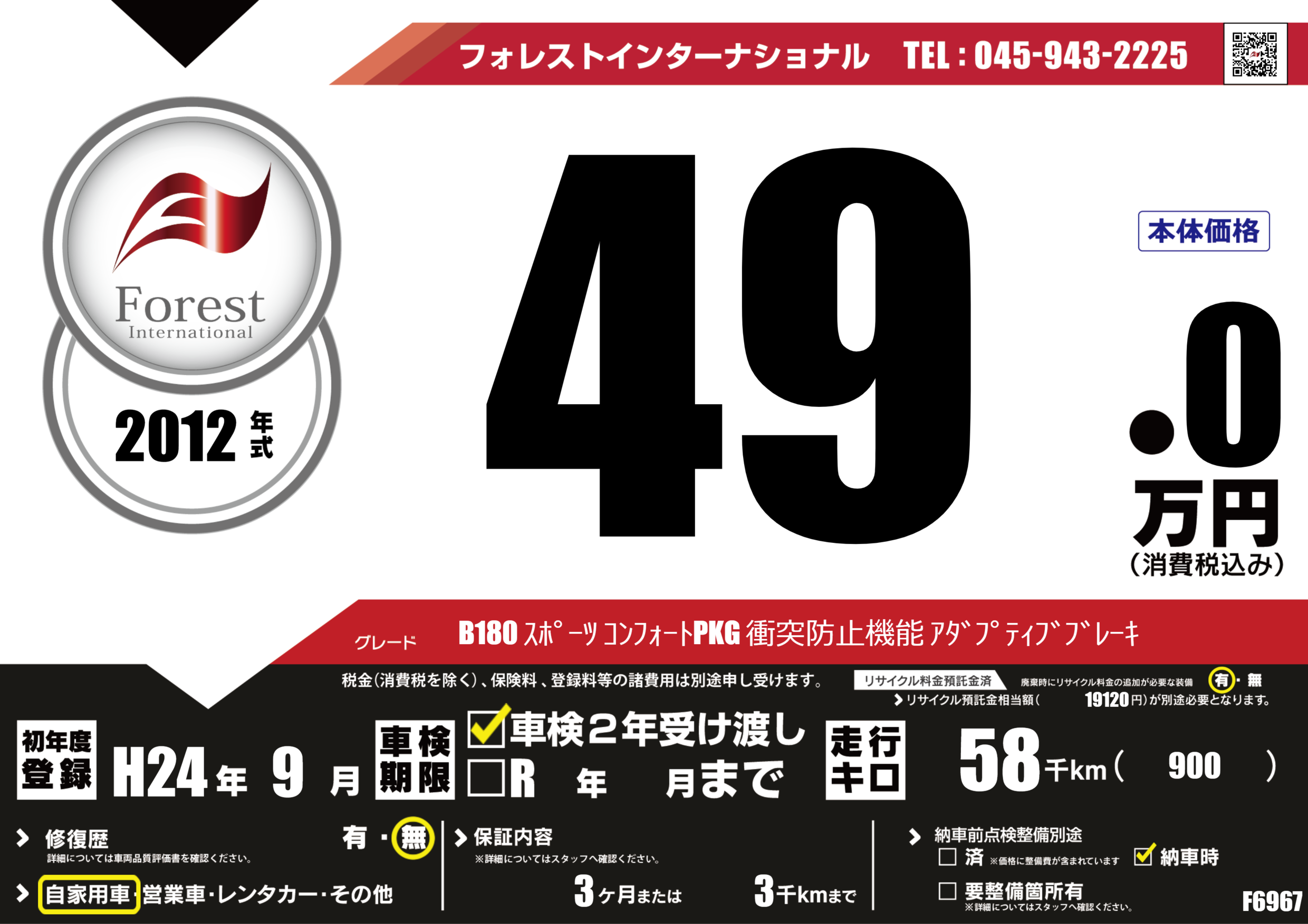| 走行キロ | 5.8万km | 初年度登録 | H24年9月 |