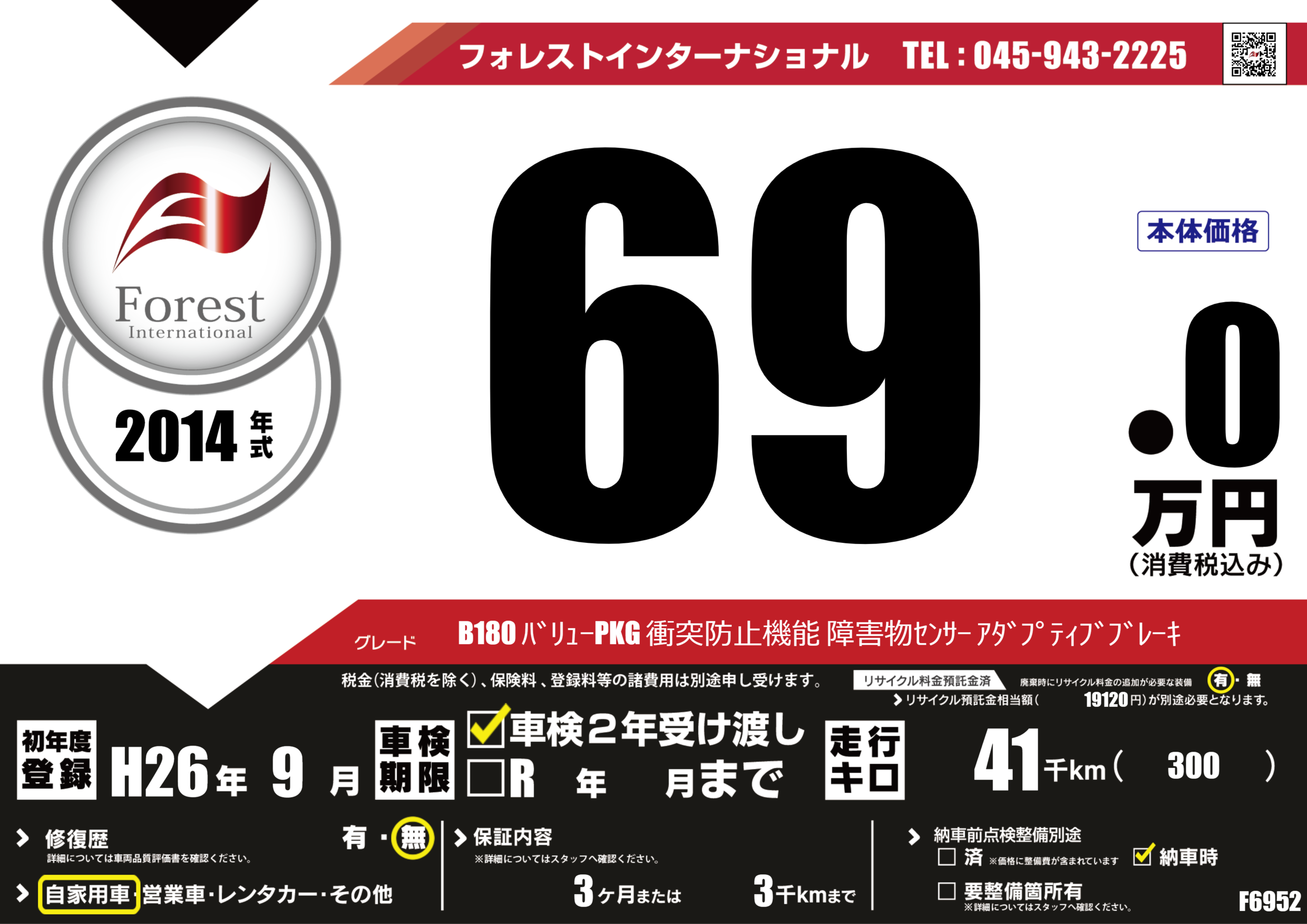 | 走行キロ | 4.1万km | 初年度登録 | H26年9月 |