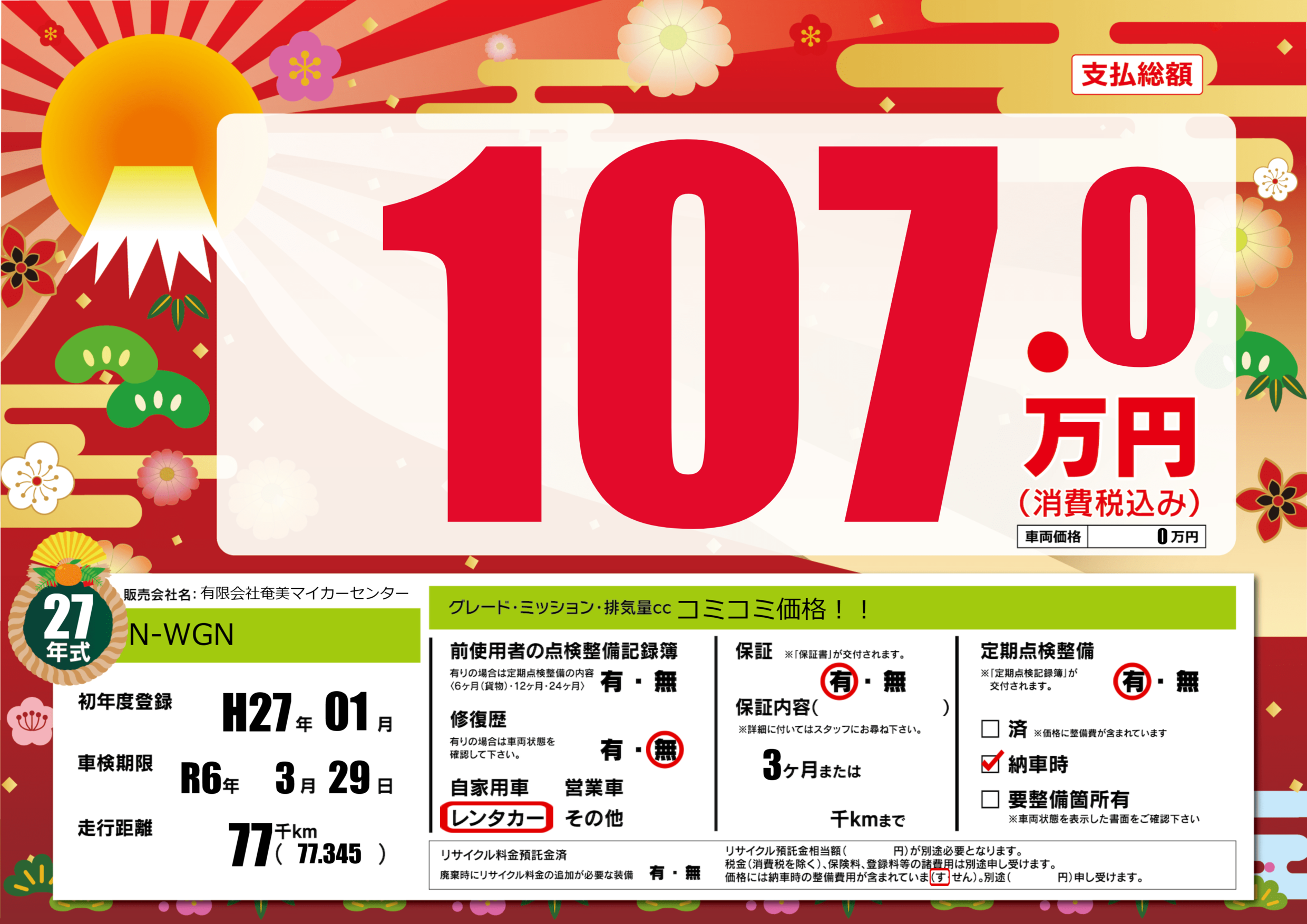| 車名 | N-WGN | グレード ミッション 排気量 |