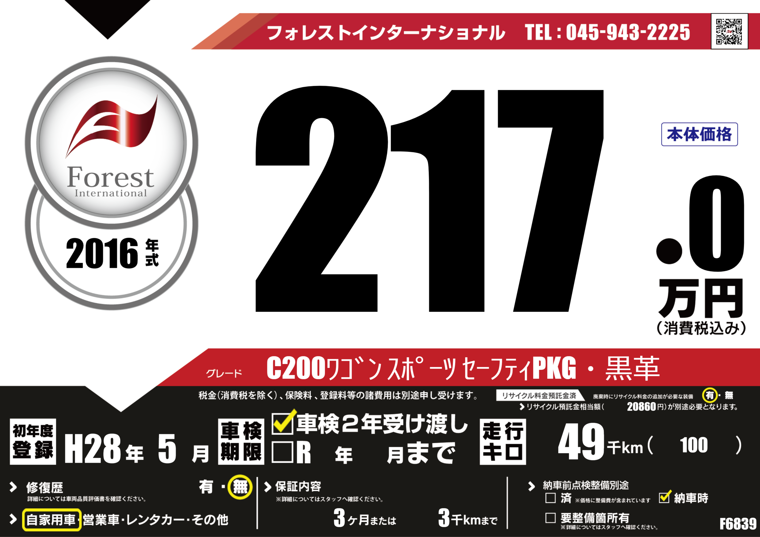 | 走行キロ | 4.9万km | 初年度登録 | H28年5月 |