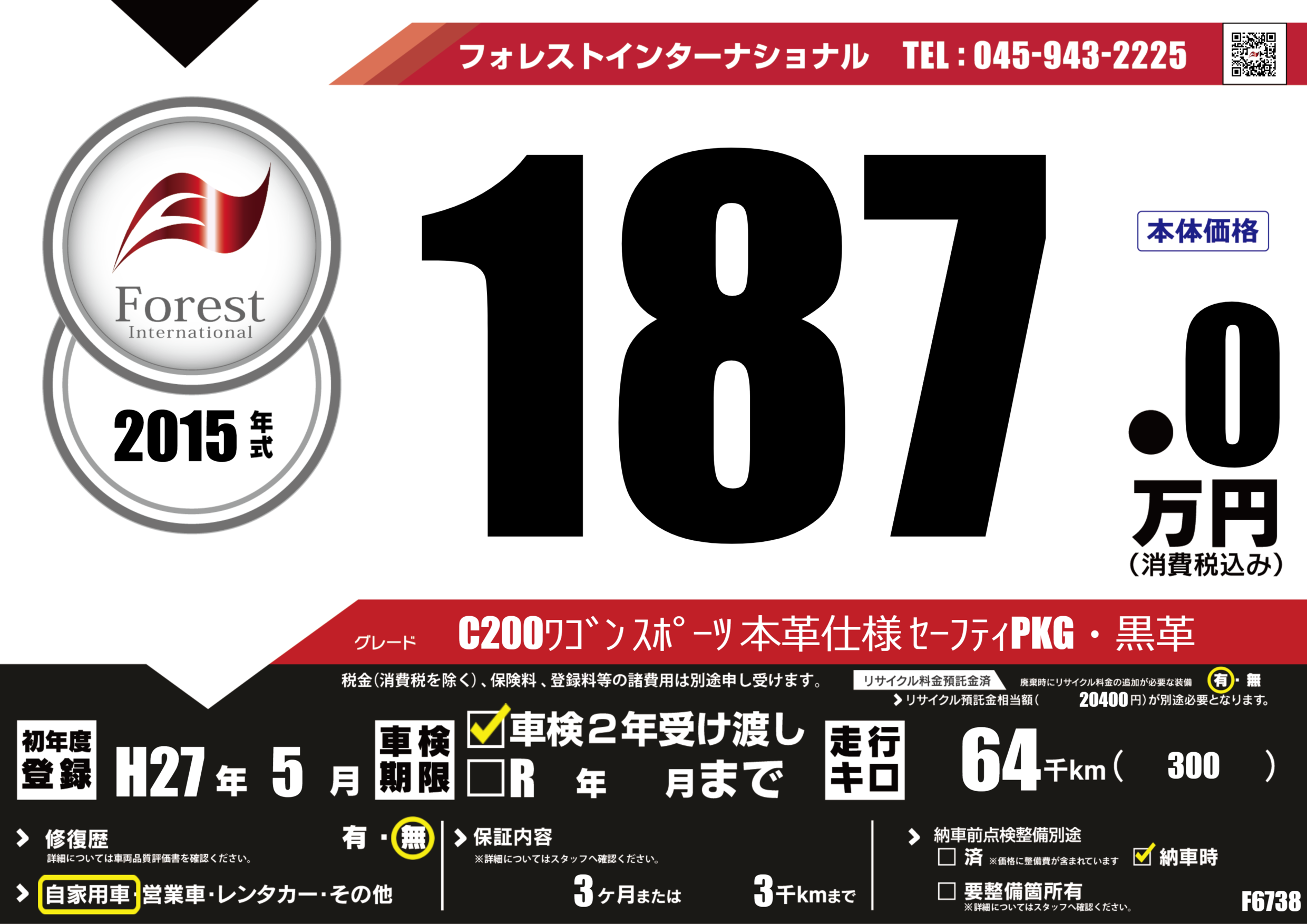 | 走行キロ | 6.4万km | 初年度登録 | H27年5月 |