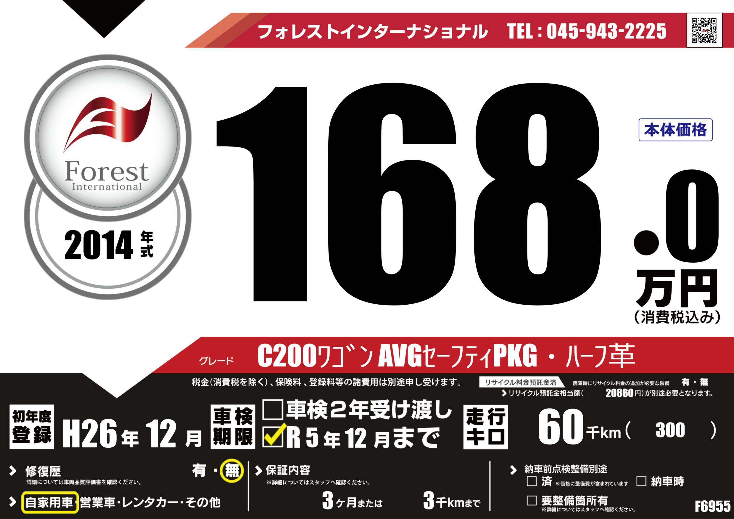 | 走行キロ | 6万km | 初年度登録 | H26年12月 |