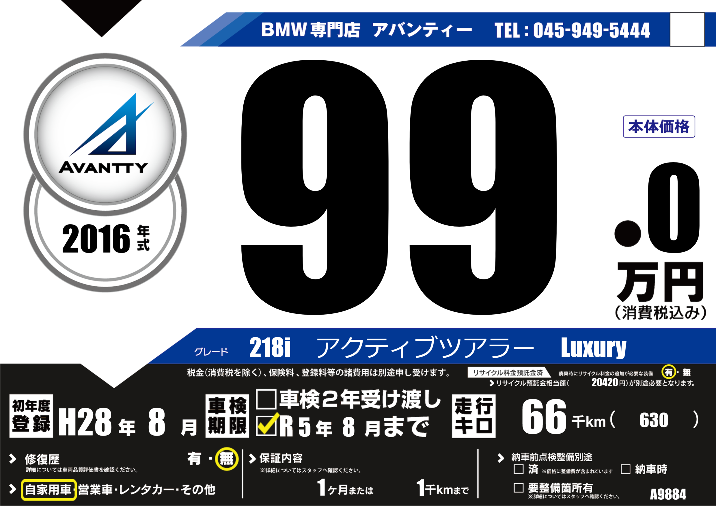 | 走行キロ | 6.6万km | 初年度登録 | H28年8月 |