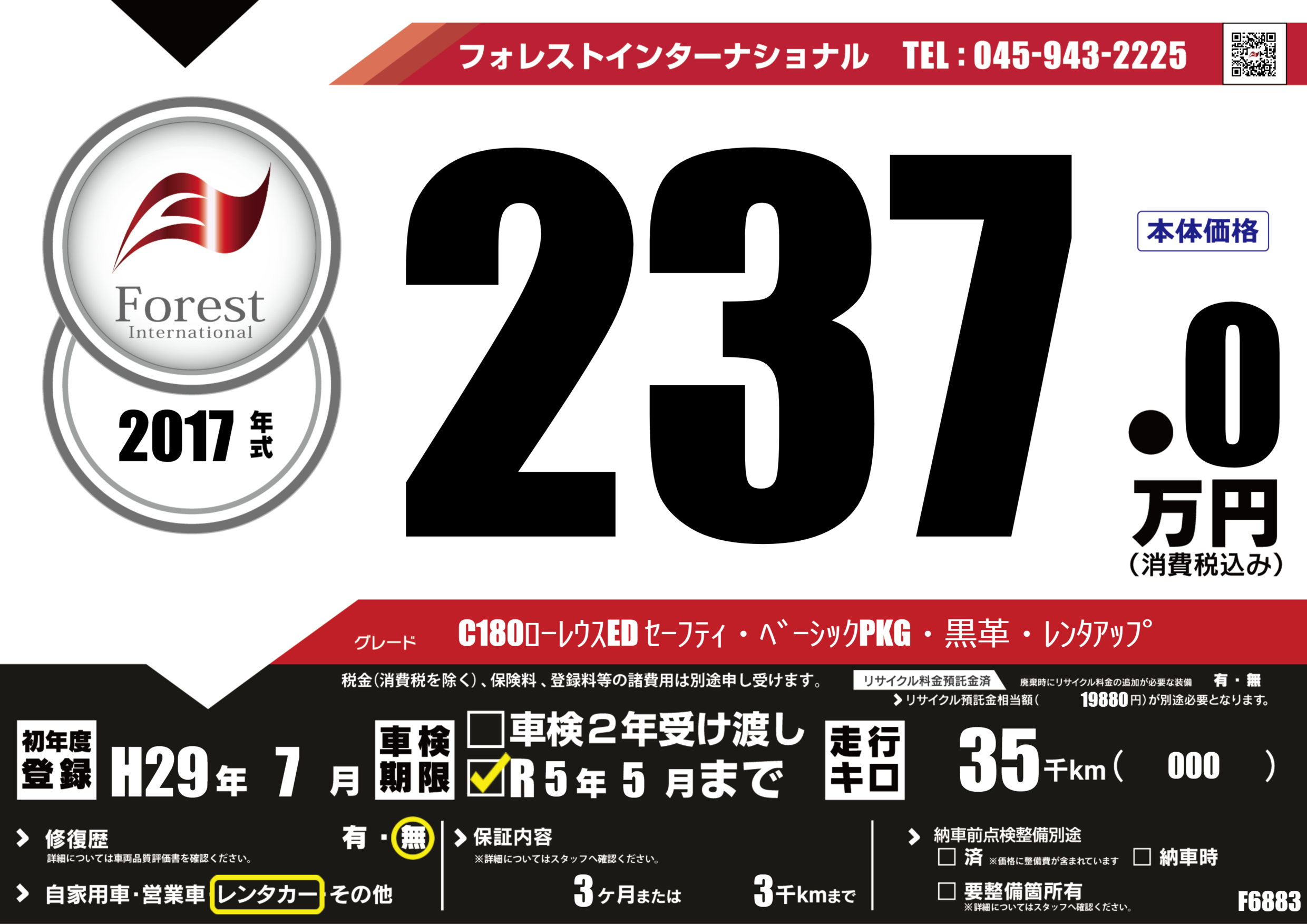 | 走行キロ | 3.5万km | 初年度登録 | H29年7月 |