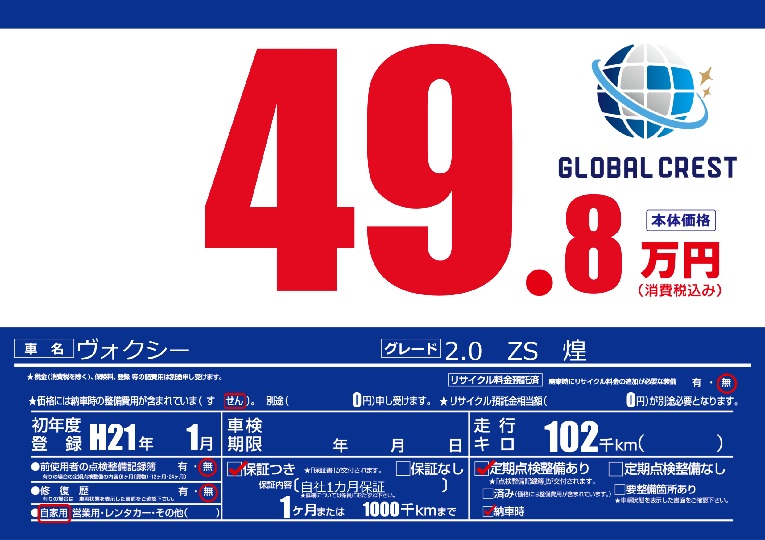 | 車名 | ヴォクシー | グレード ミッション 排気量 |