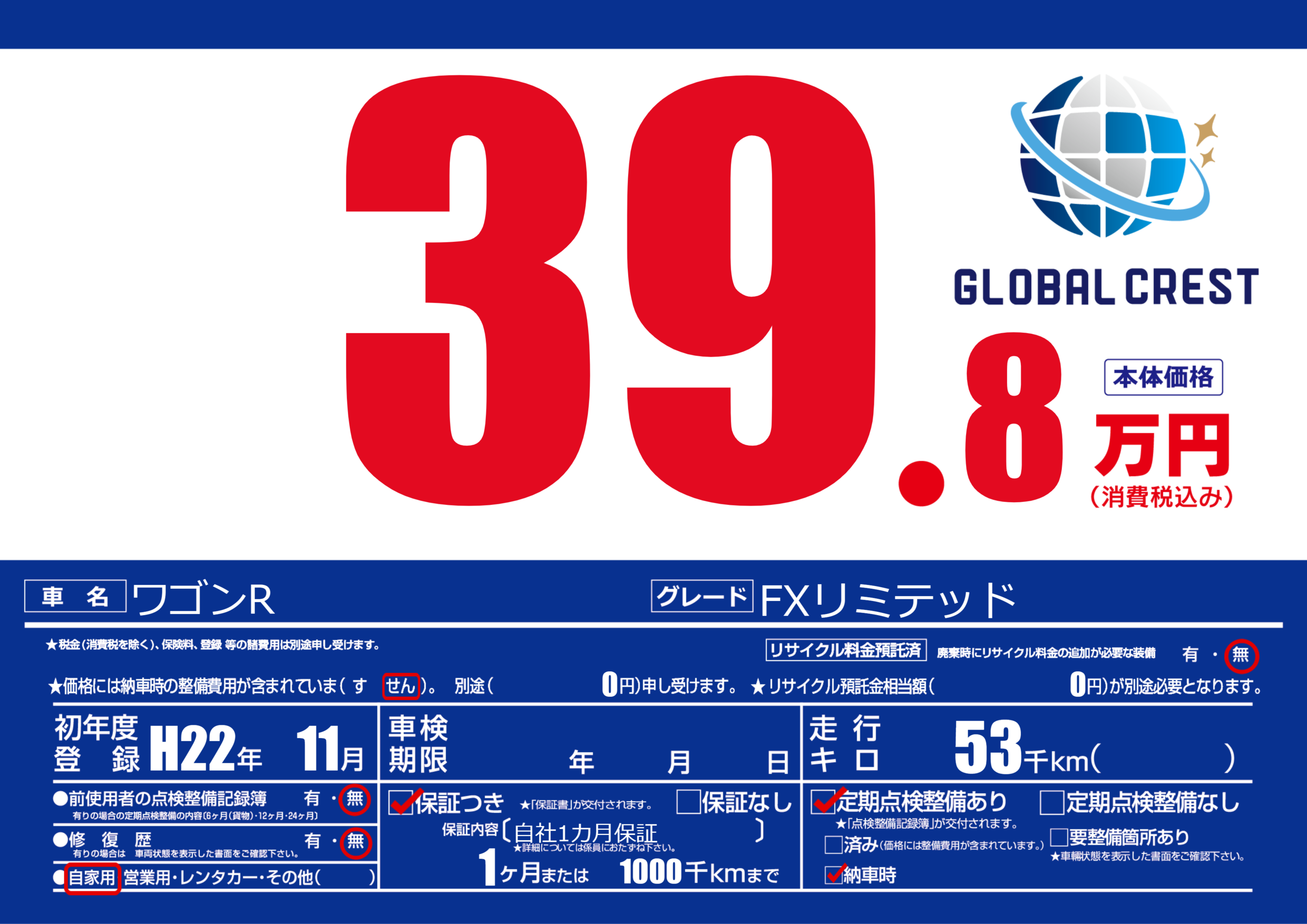 | 車検制限 | - 年 - 月 - 日 | ||