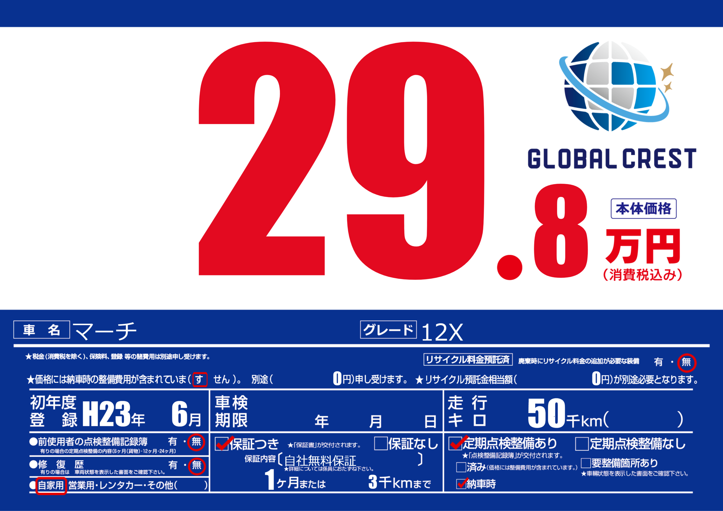 | 車名 | マーチ | グレード ミッション 排気量 |