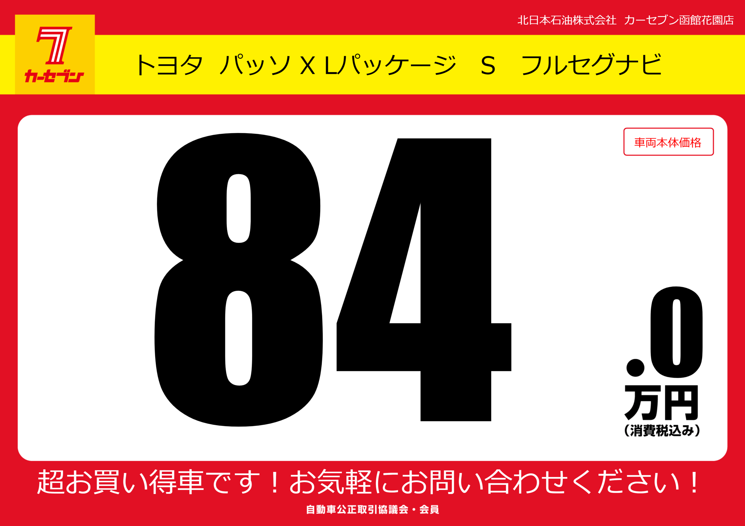 | 車名 | トヨタ パッソ X Lパッケージ S フルセグナビ | グレード ミッション 排気量 |