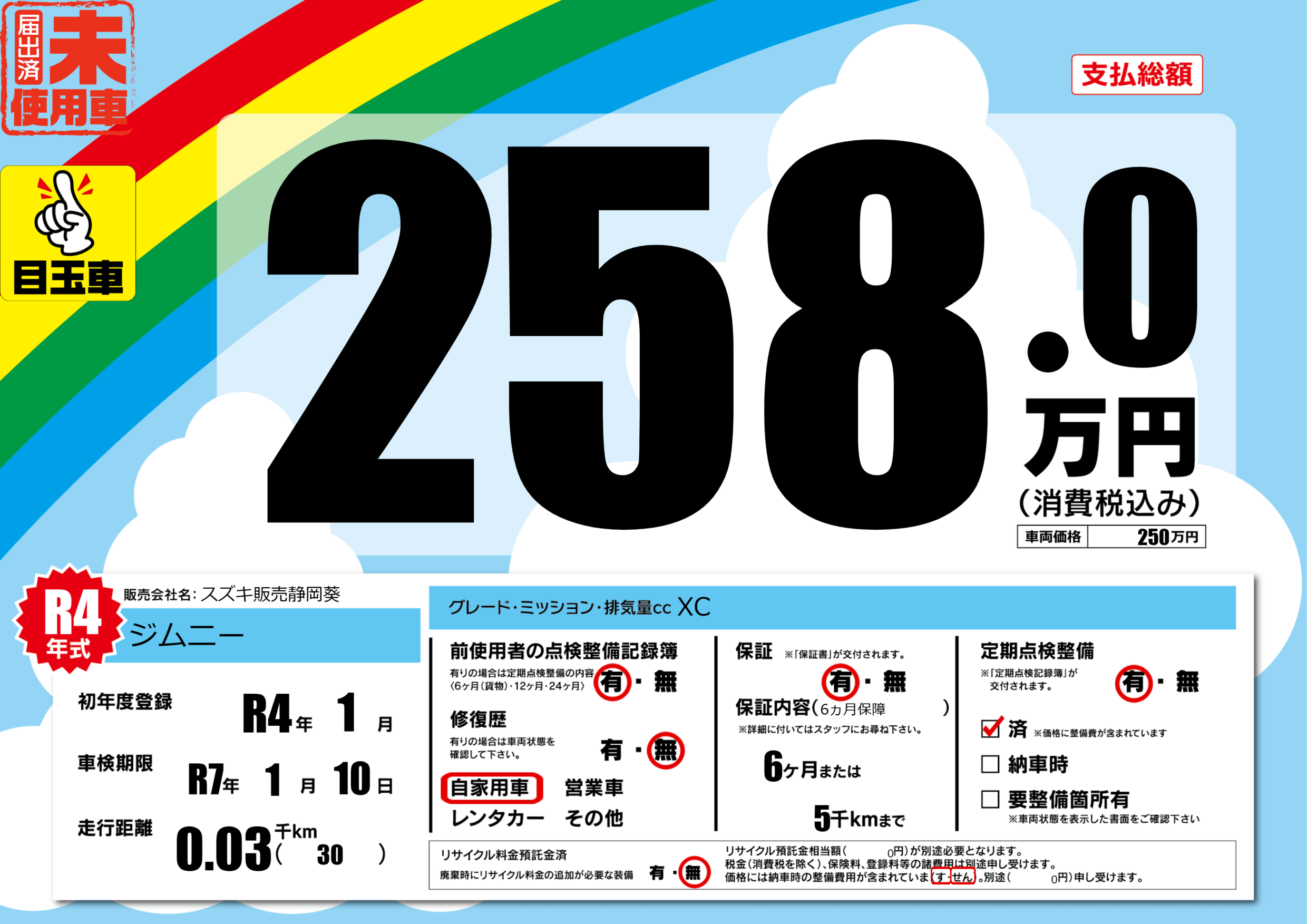 | 定期点検整備 | 定期点検整備あり 定期点検整備済み | ||