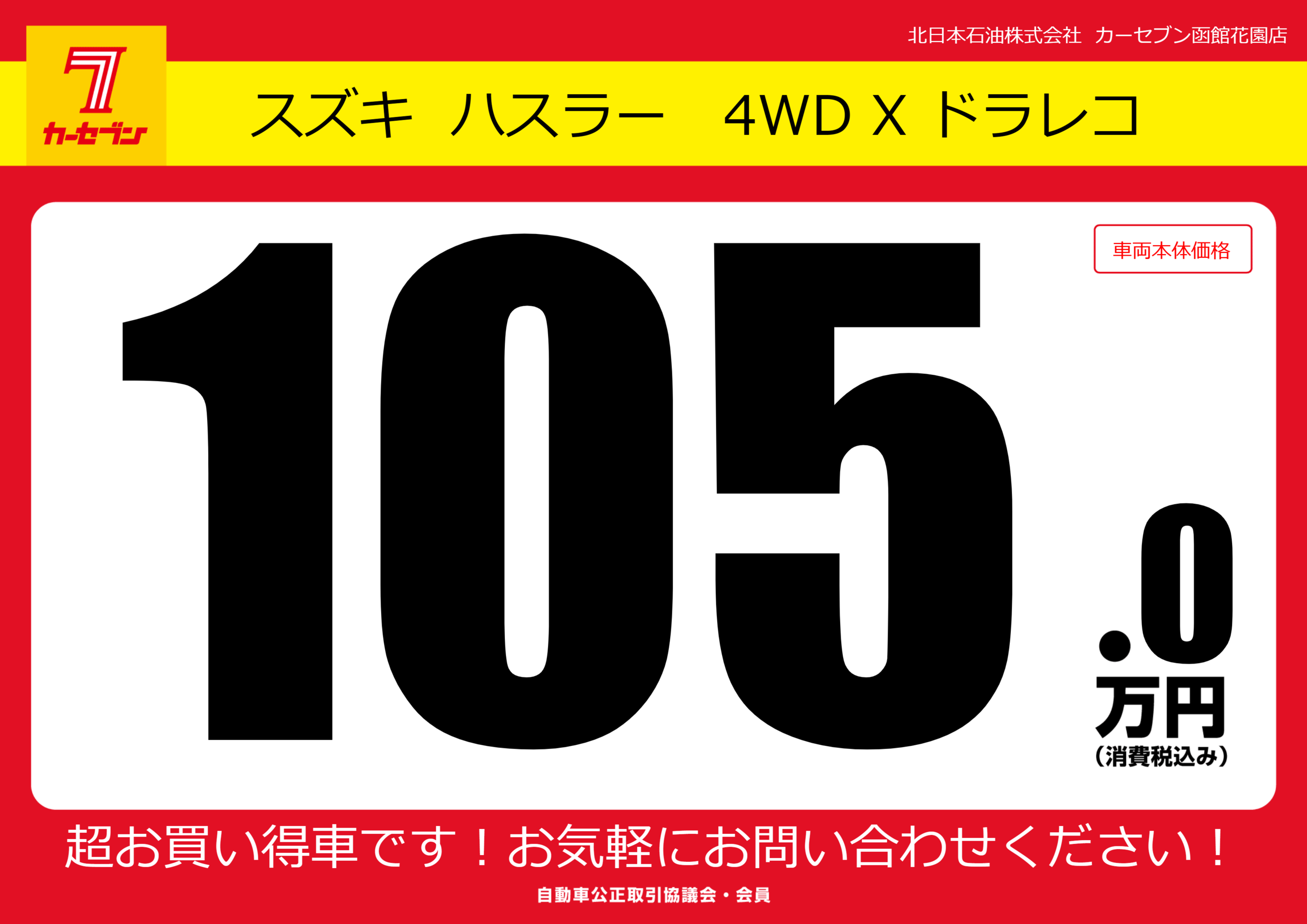 | 車名 | スズキ ハスラー 4WD X ドラレコ | グレード ミッション 排気量 |
