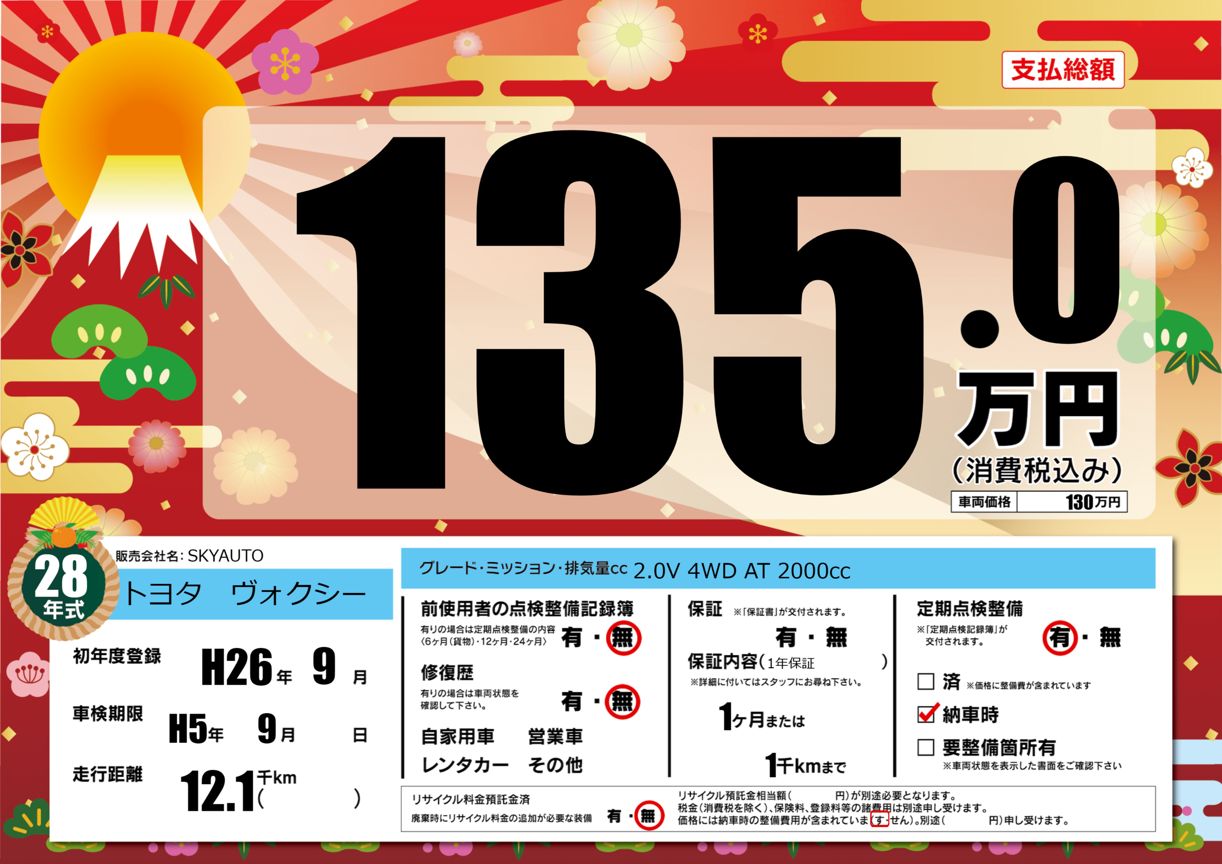 | 車名 | トヨタ ヴォクシー | グレード ミッション 排気量 |