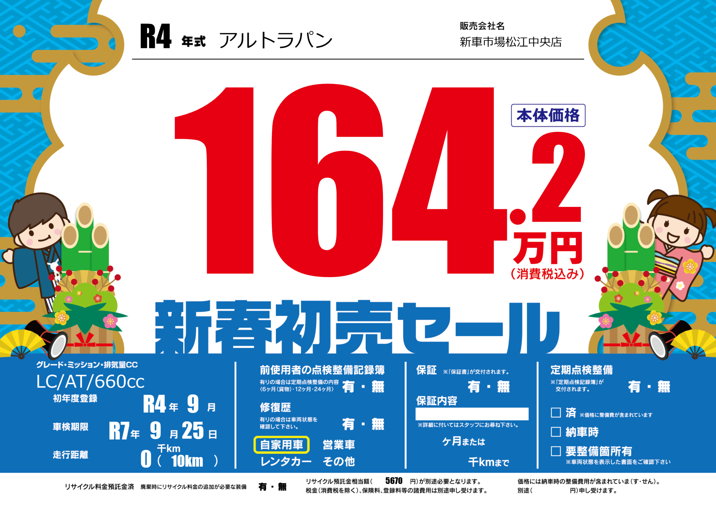 | 走行キロ | - | 初年度登録 | R4年9月 |