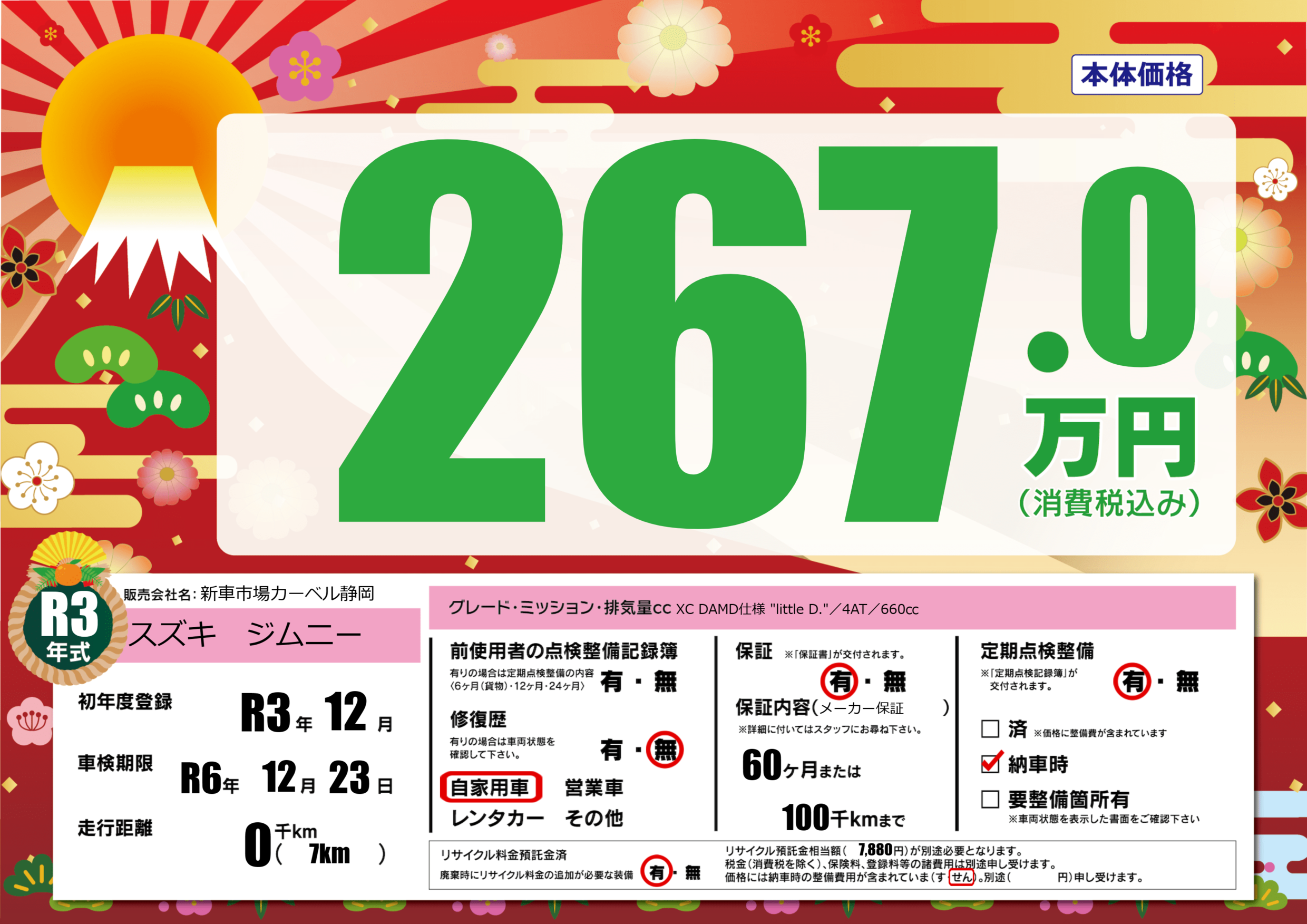 | 走行キロ | - | 初年度登録 | R3年12月 |