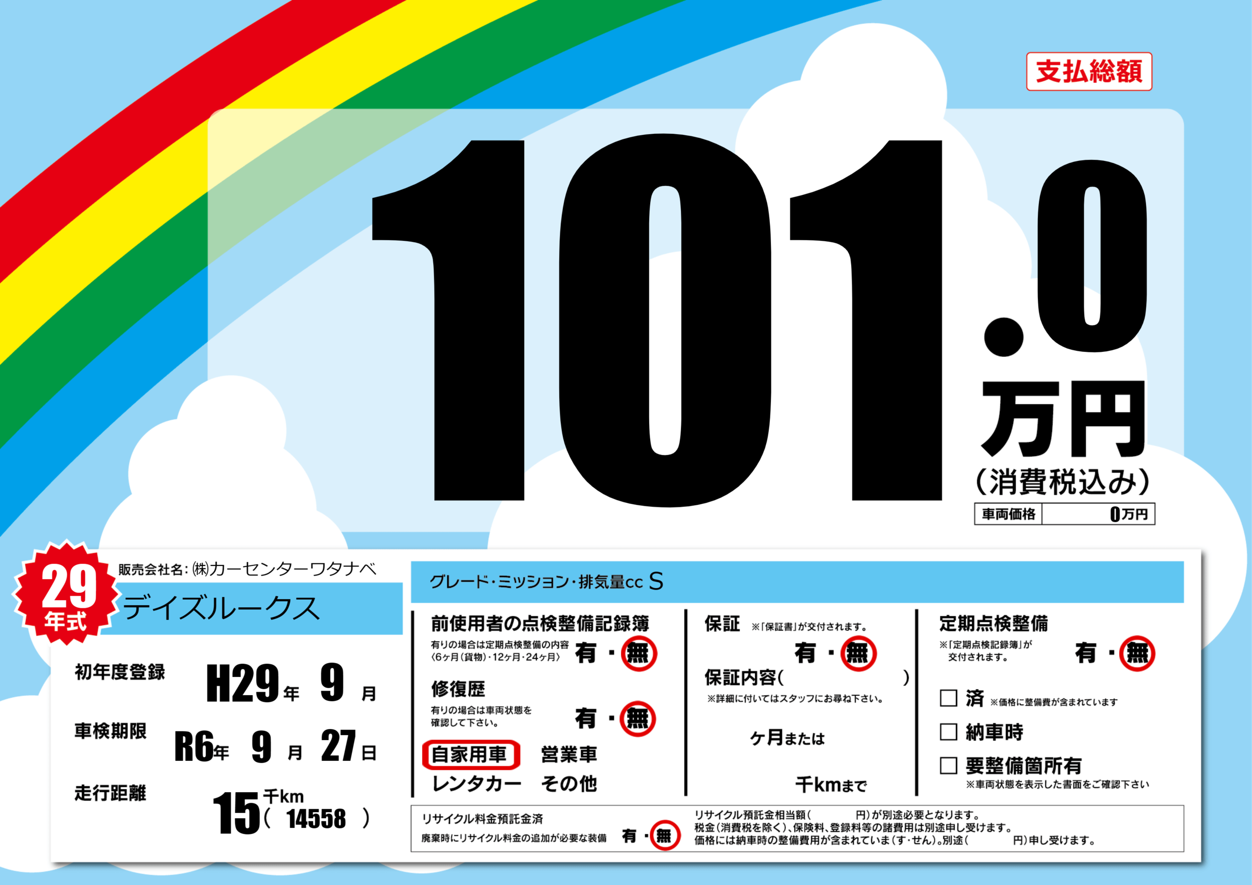 | 車名 | デイズルークス | グレード ミッション 排気量 |