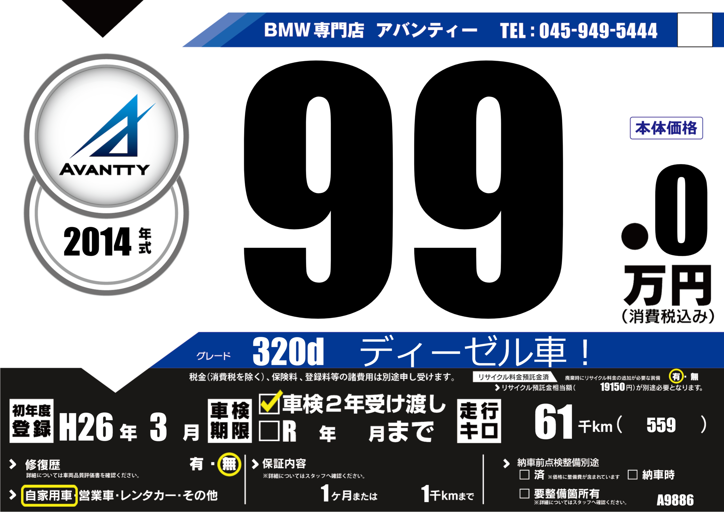 | 走行キロ | 6.1万km | 初年度登録 | H26年3月 |