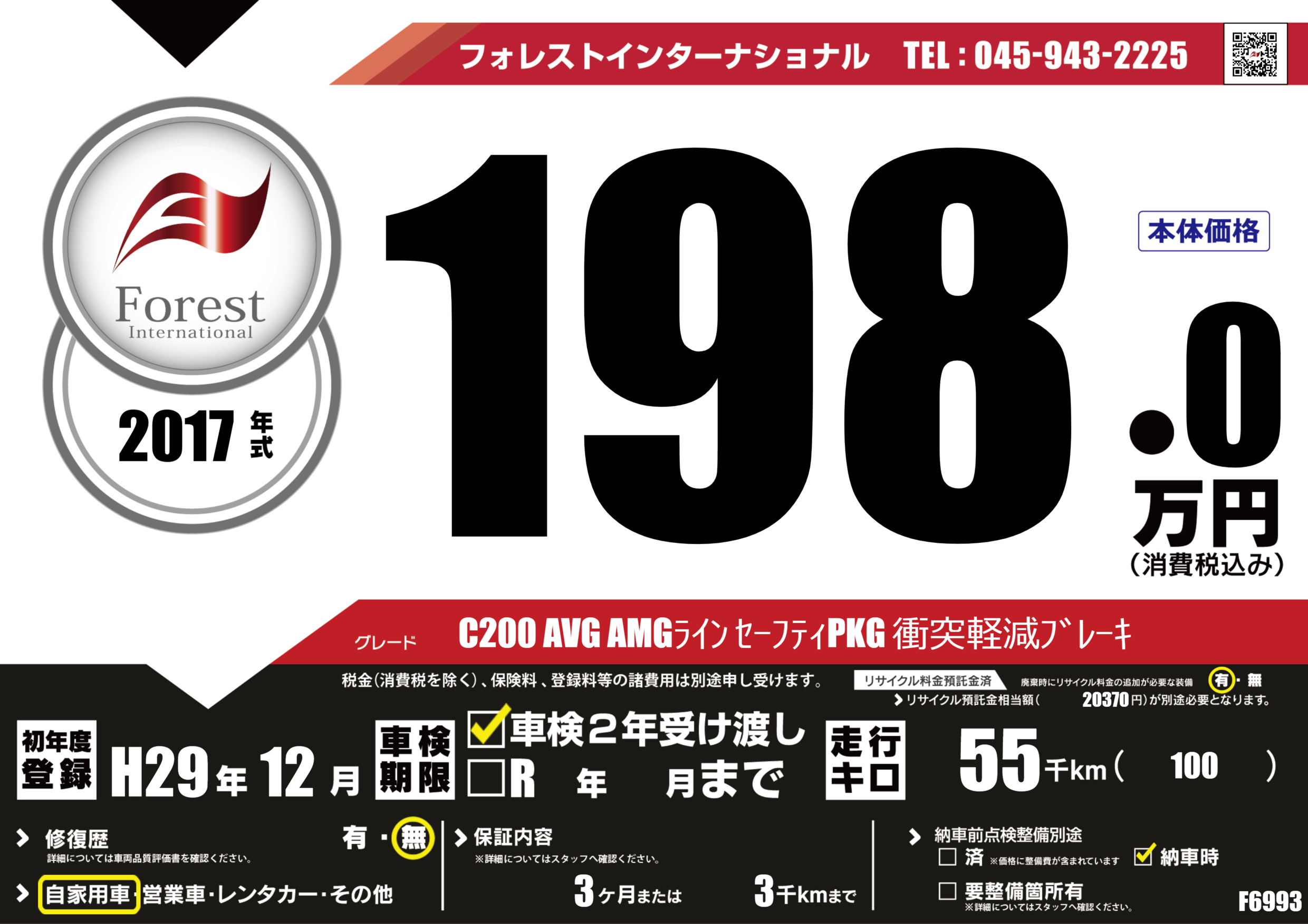 | 走行キロ | 5.5万km | 初年度登録 | H29年12月 |
