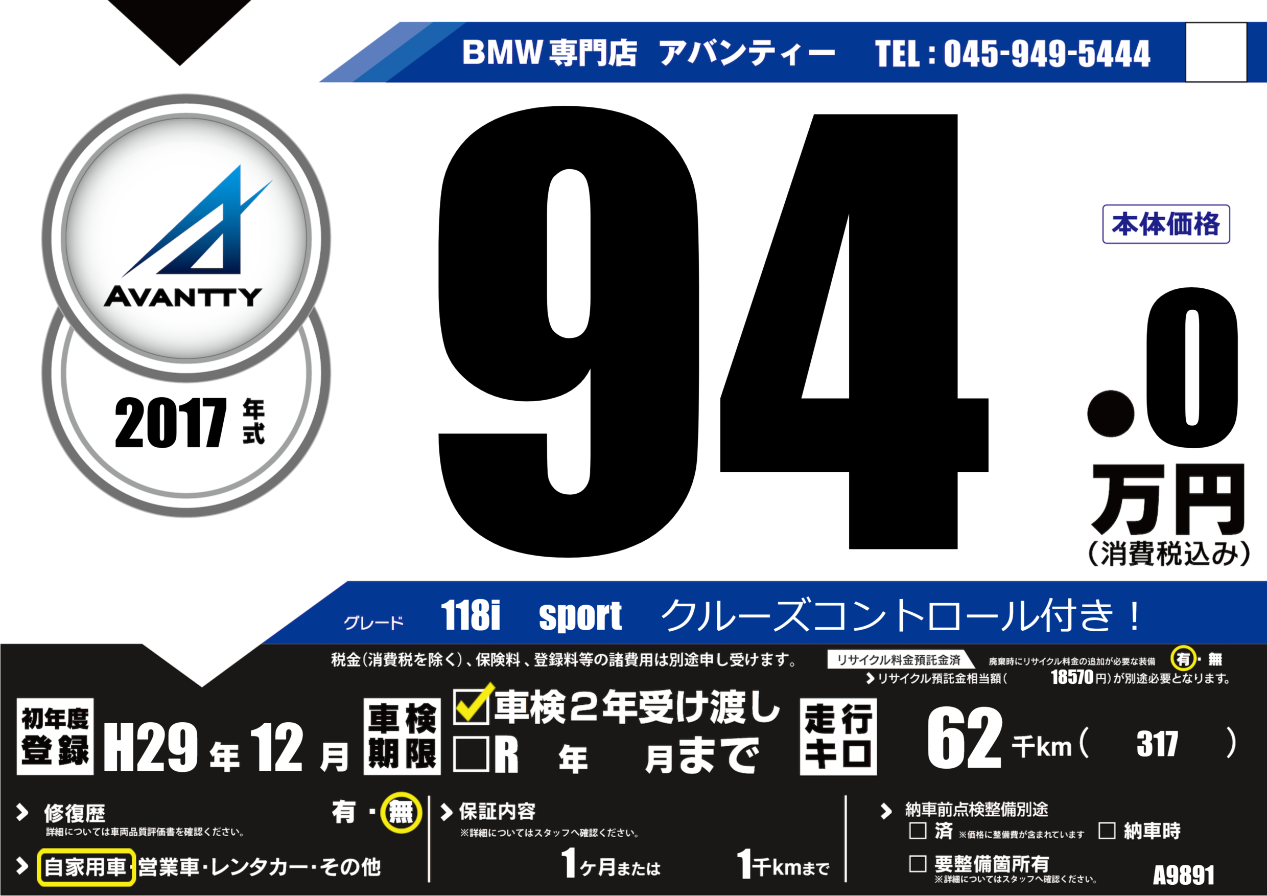 | 初年度登録 | H29年12月 | ||
