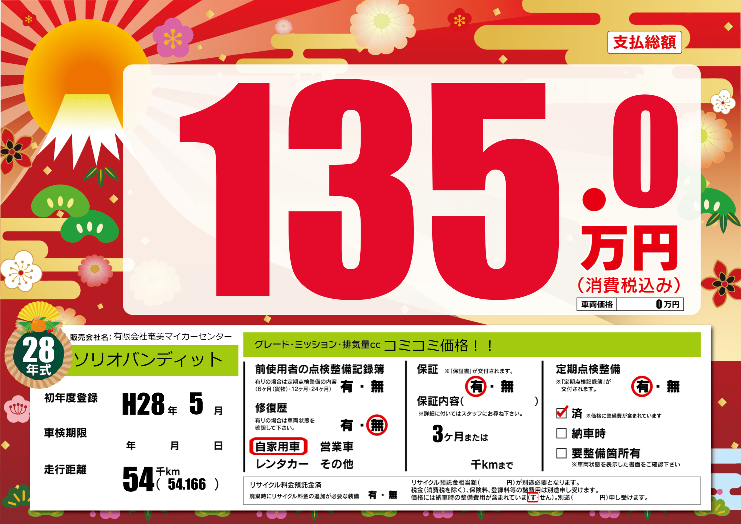 | 定期点検整備 | 定期点検整備あり 定期点検整備済み | ||