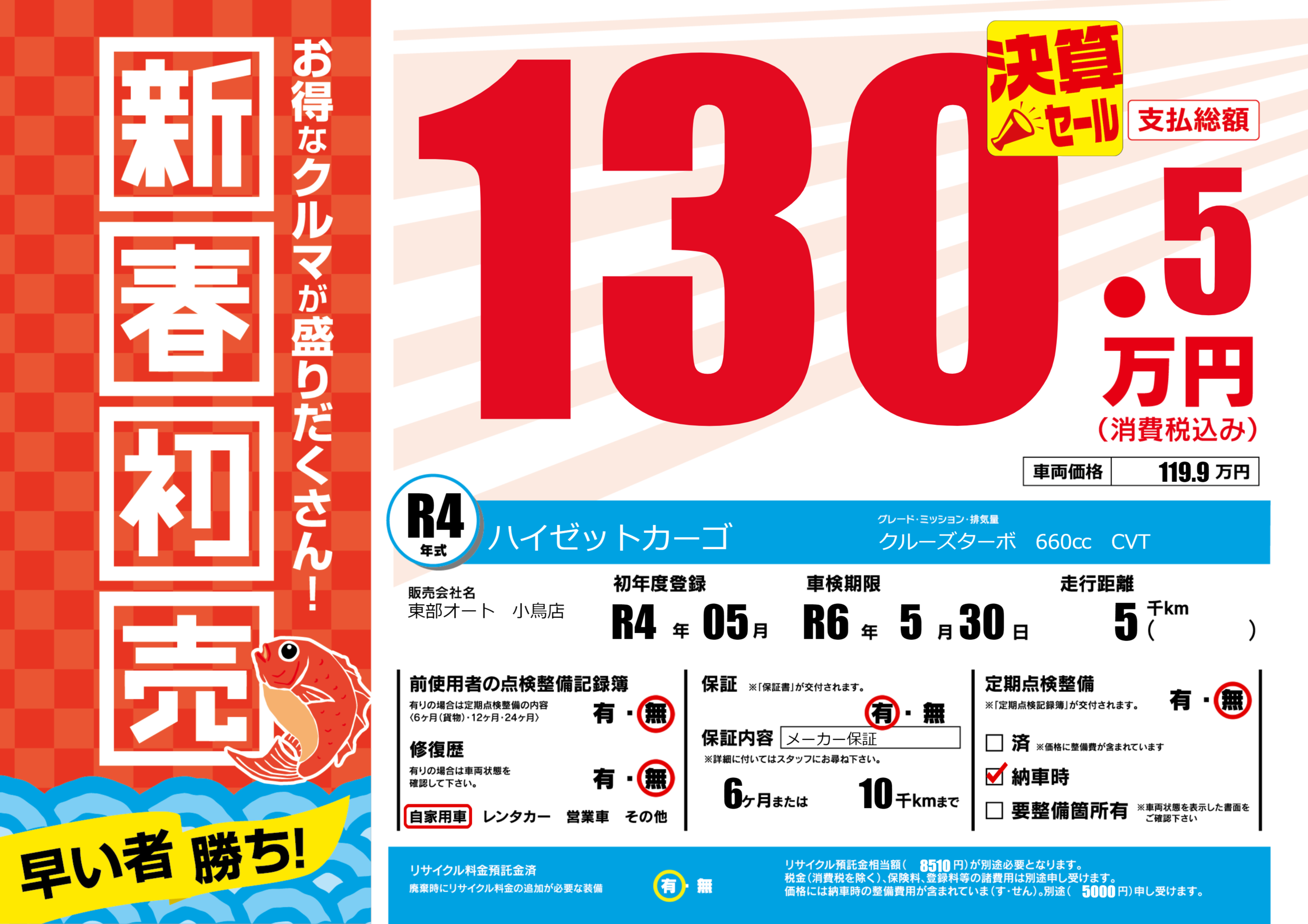 保証付き 保証内容(メーカー保証) 6ヶ月または(10)千kmまで |