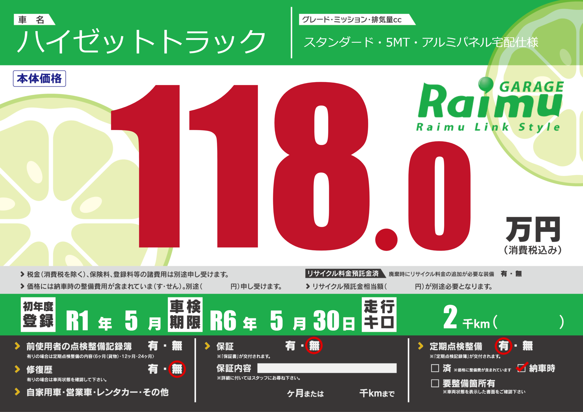 なし | 車検制限 | R6年5月30月 |