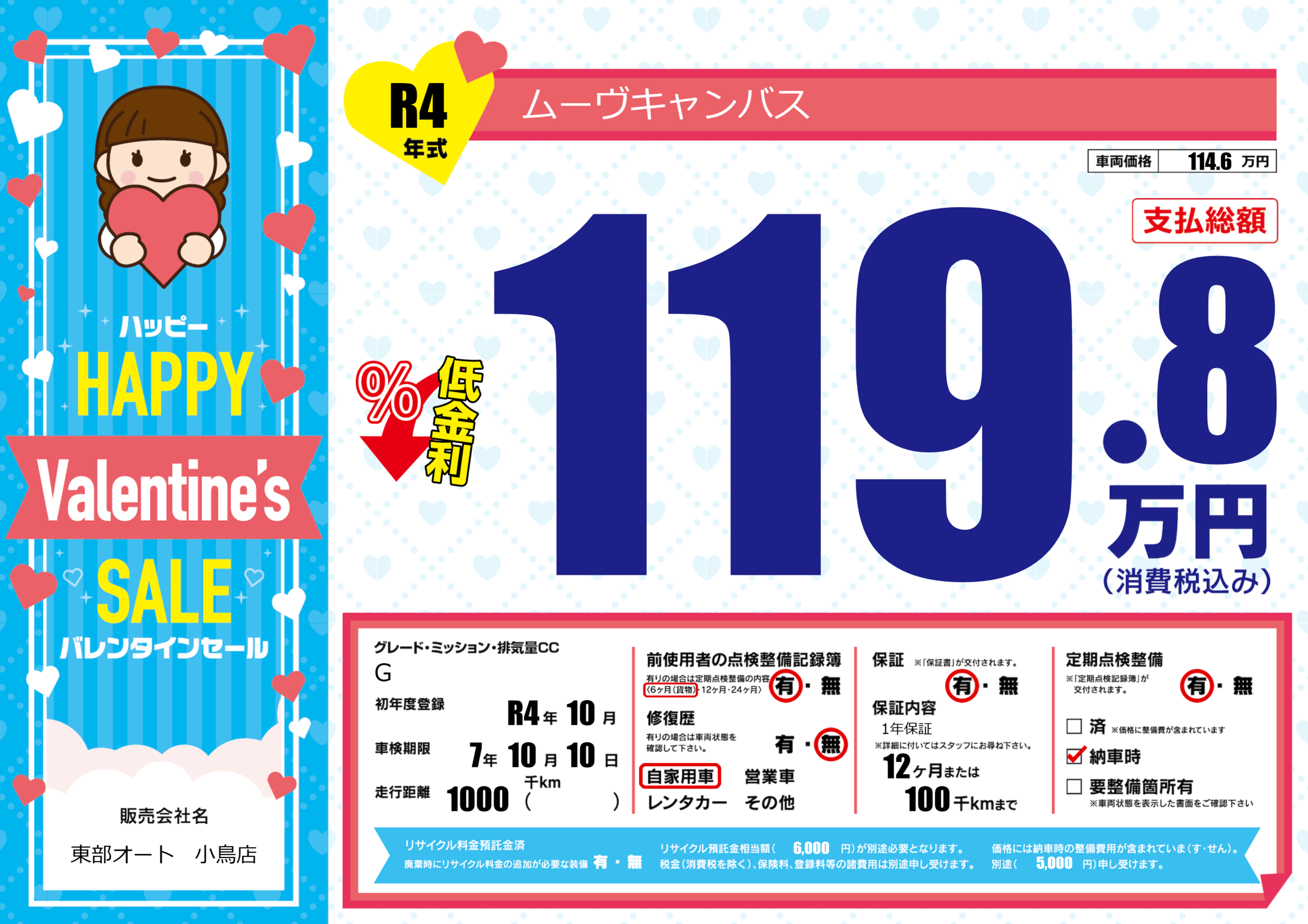 | 定期点検整備 | 定期点検整備あり 納車時あり | ||