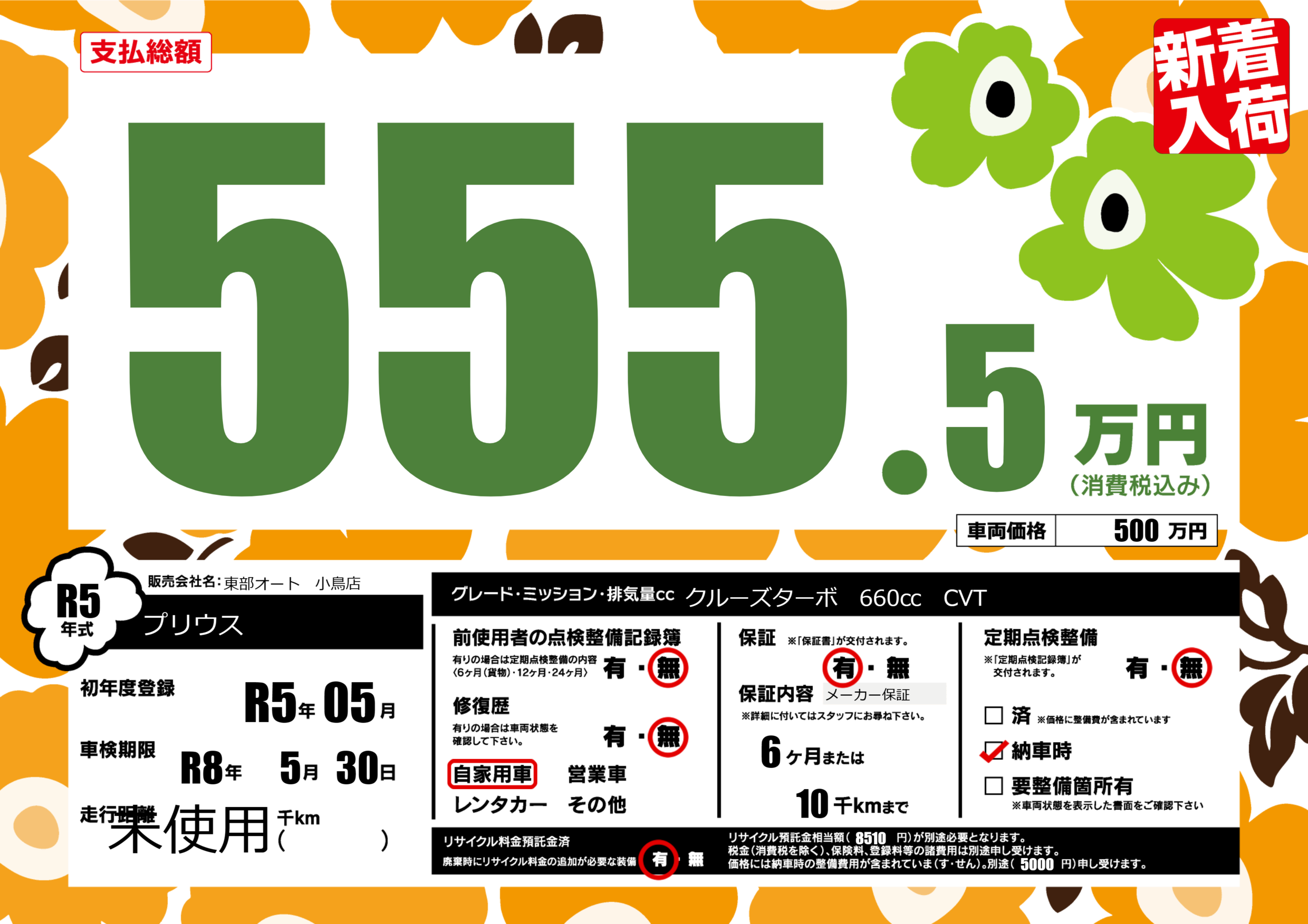 | 車名 | プリウス | グレード ミッション 排気量 |