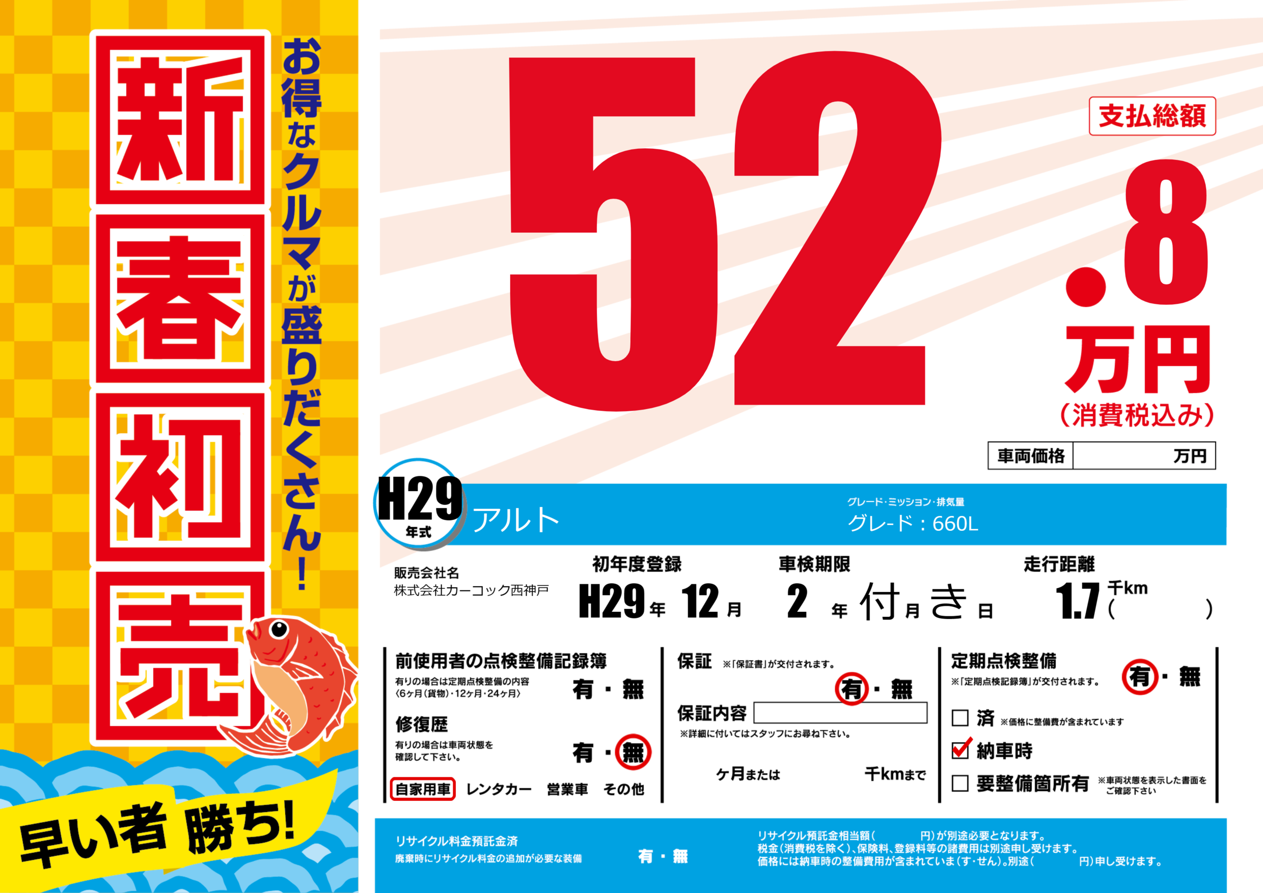 | 定期点検整備 | 定期点検整備あり 納車時あり | ||
