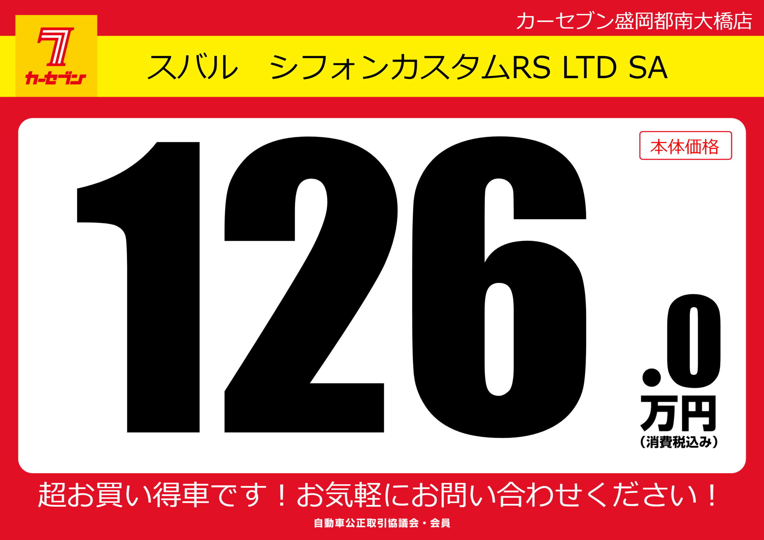 | 車名 | スバル シフォンカスタムRS LTD SA | グレード ミッション 排気量 |