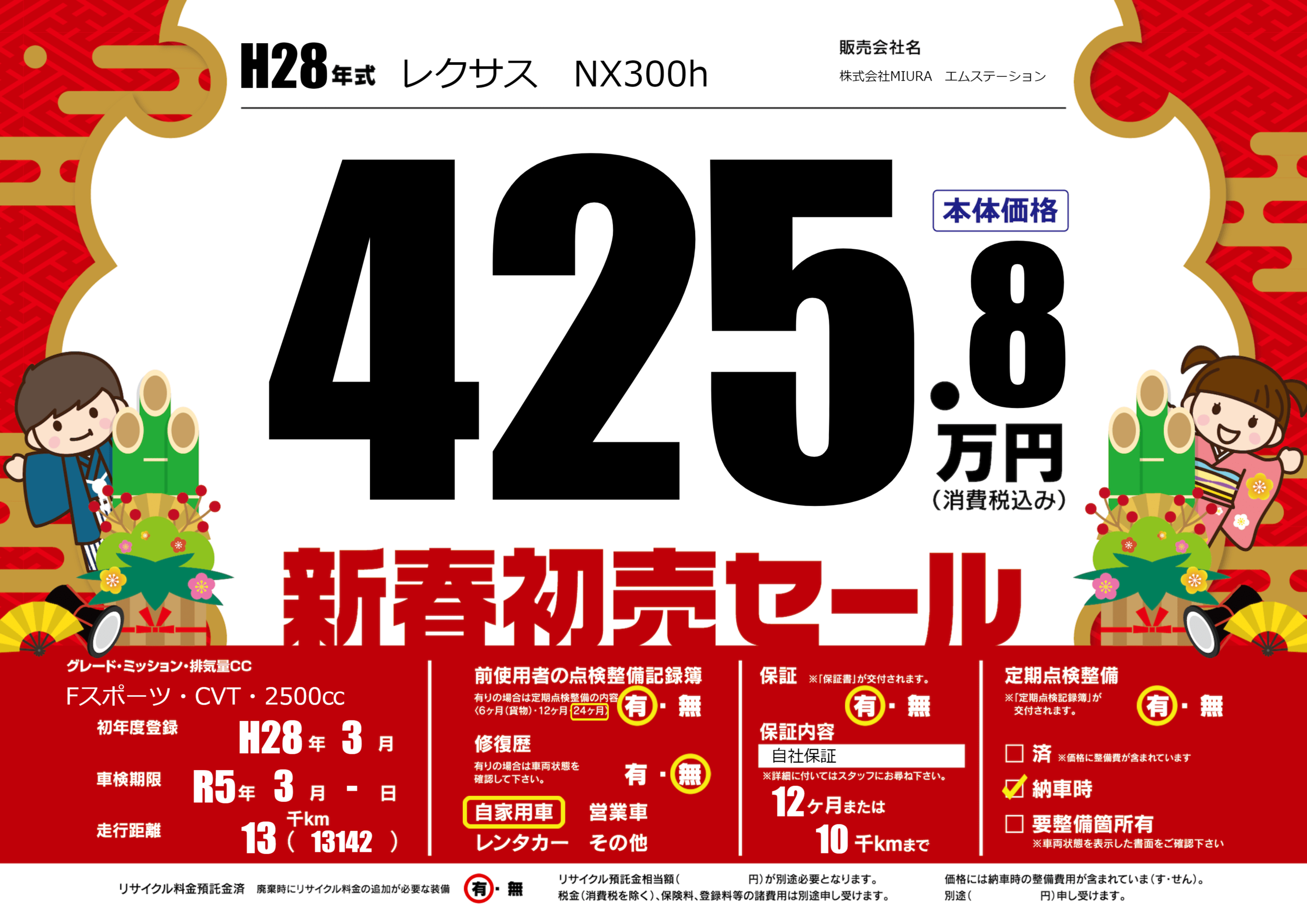 | 車検制限 | R5年 3月 -日 | ||