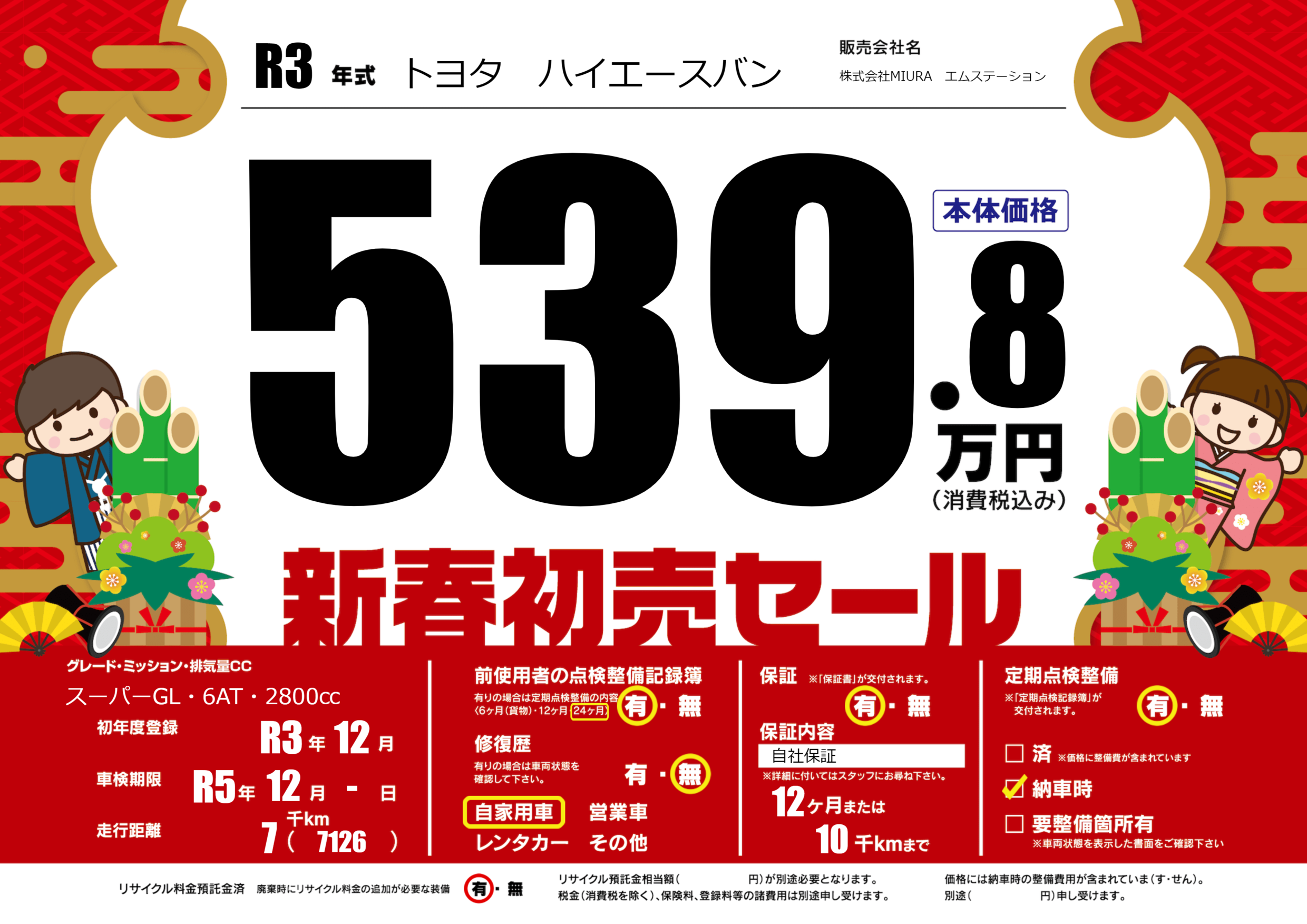 | 走行キロ | 0.7万km | 初年度登録 | R3年12月 |