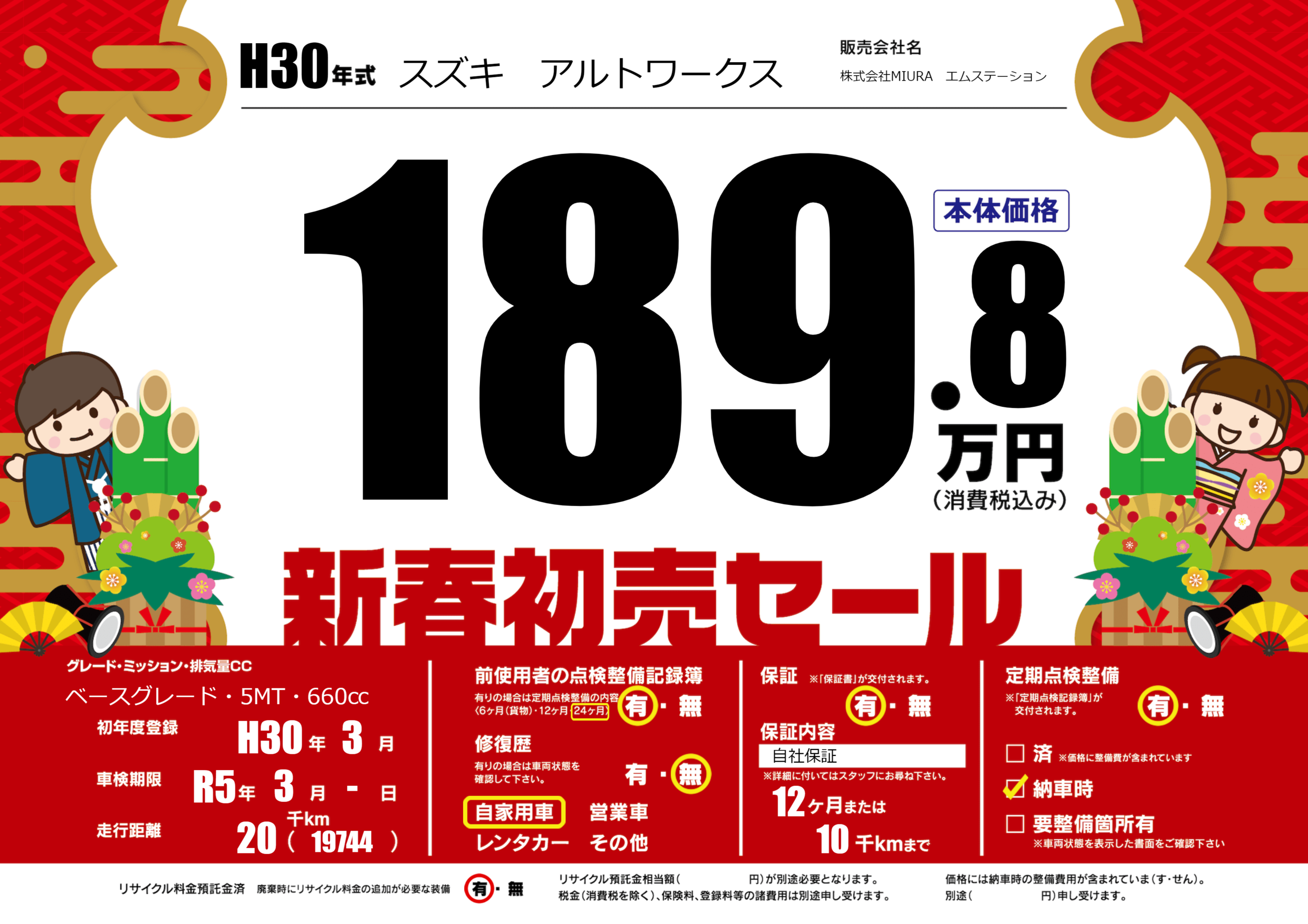 保証付き 保証内容(自社保証) 12ヶ月または(10)千kmまで |