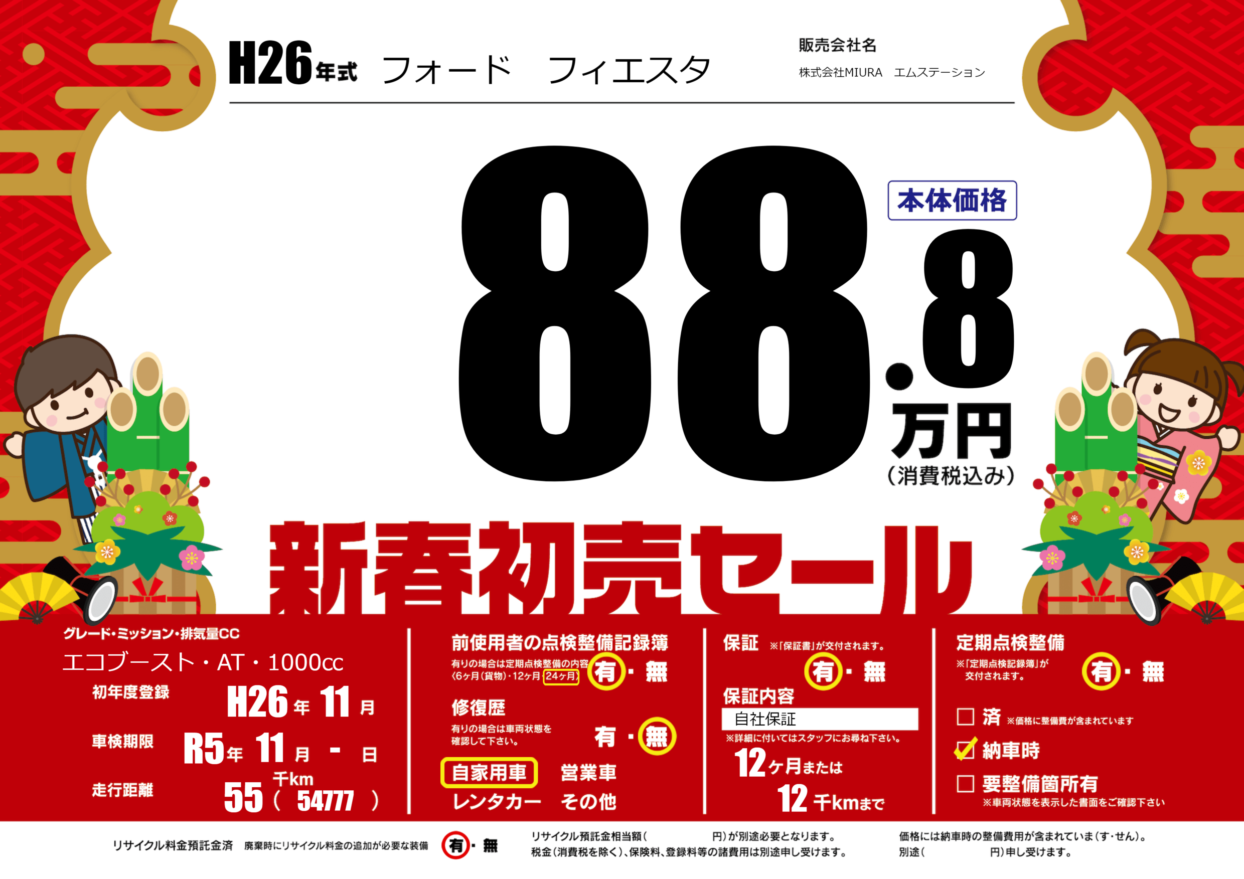 | 車名 | フォード フィエスタ | グレード ミッション 排気量 |