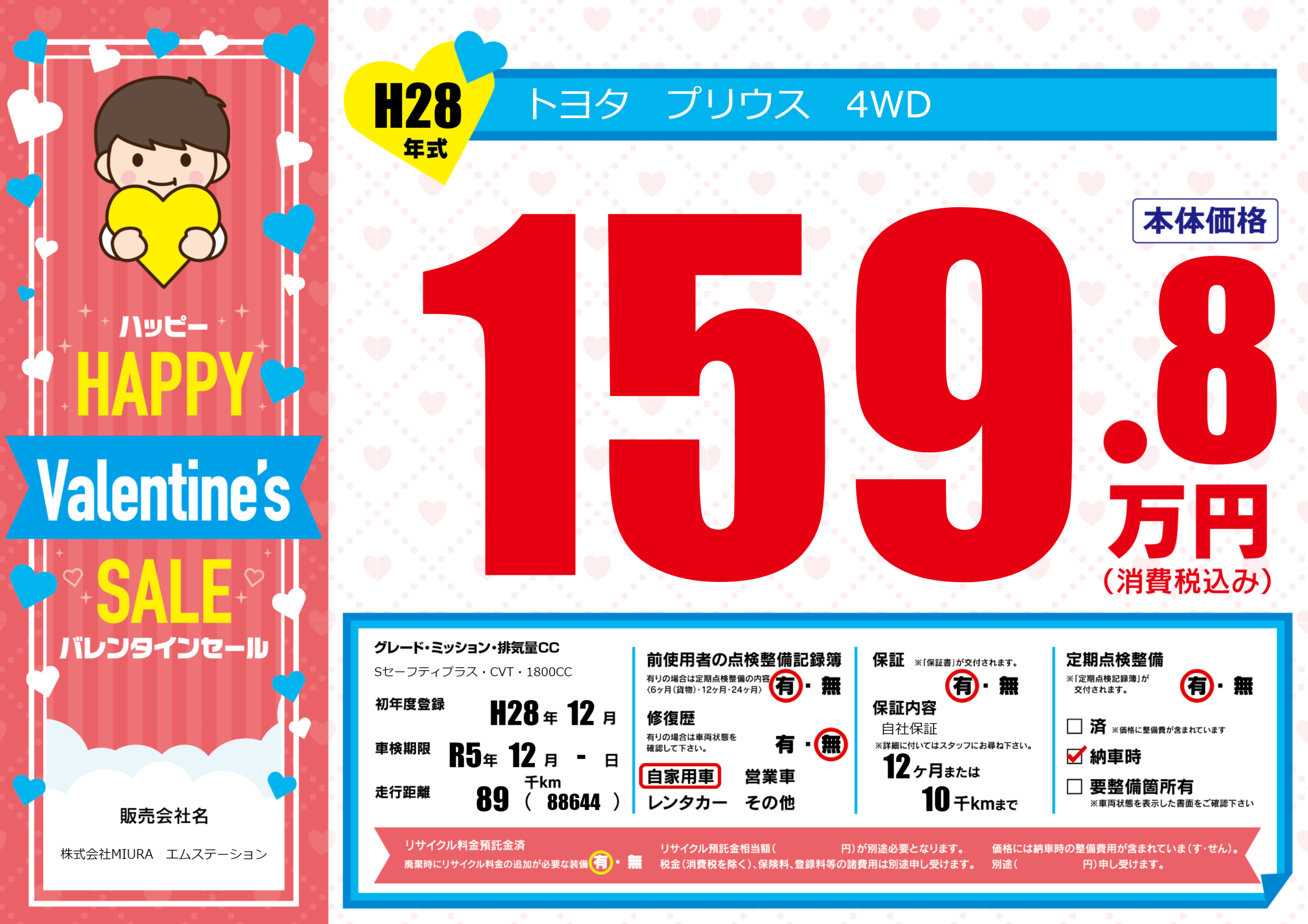 | 車名 | トヨタ プリウス 4WD | グレード ミッション 排気量 |