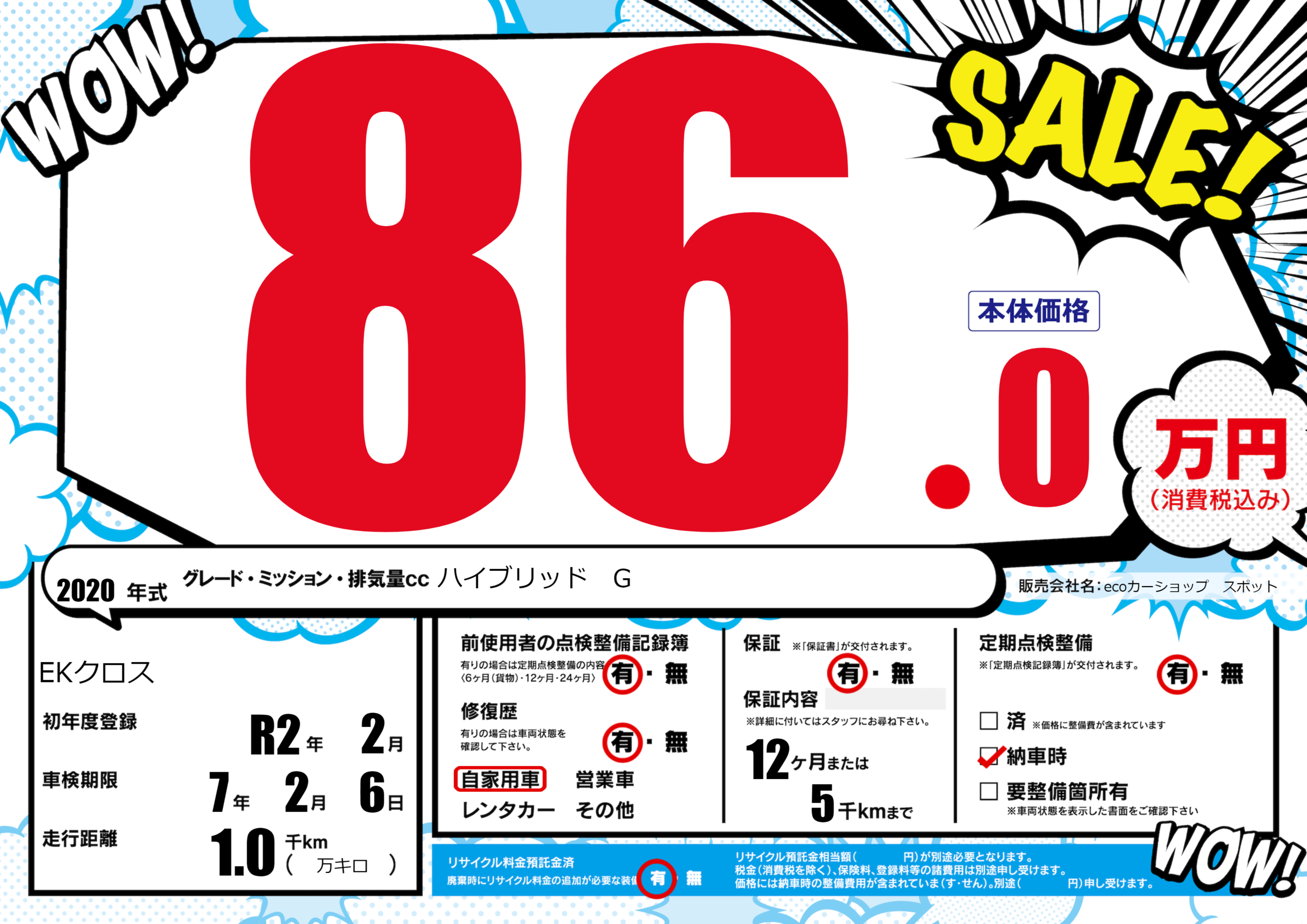 | 車名 | EKクロス | グレード ミッション 排気量 |
