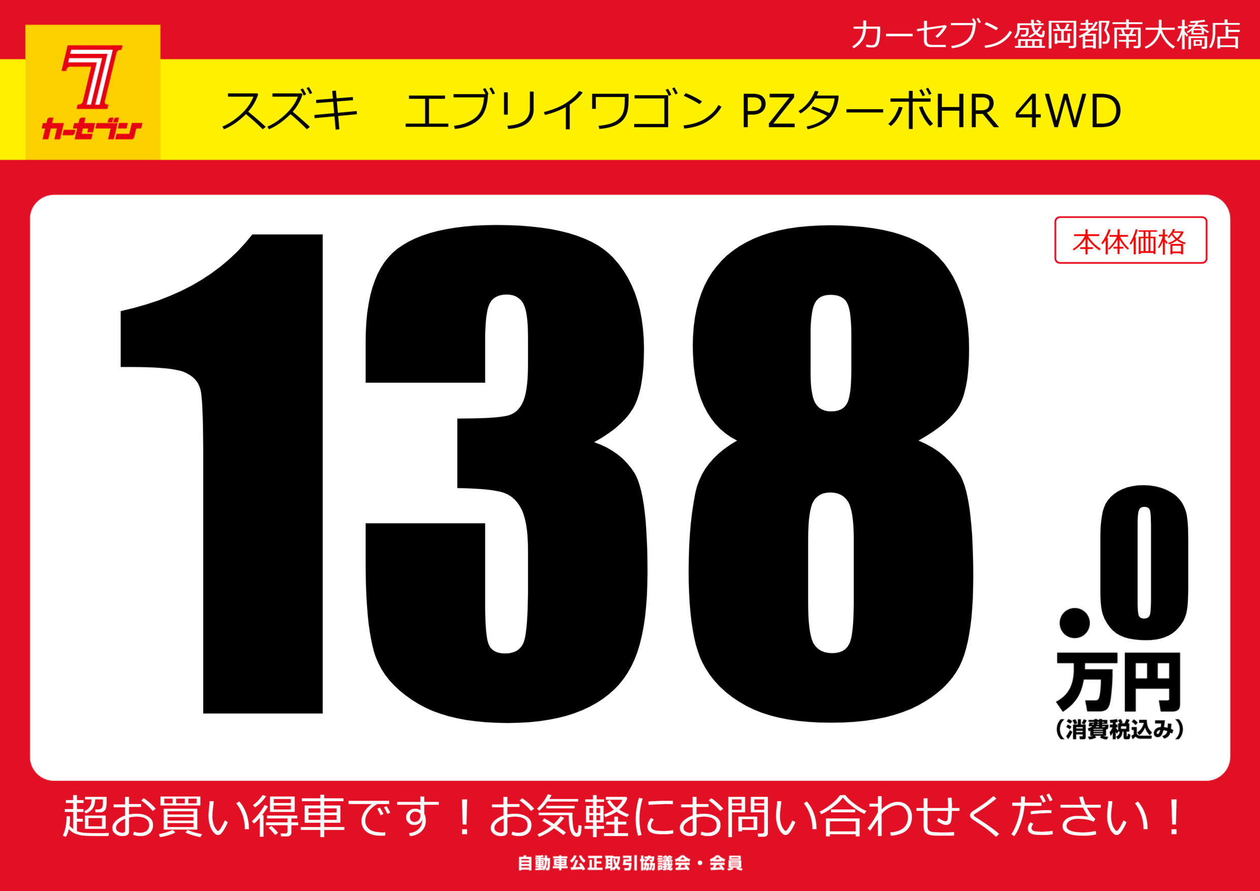 | 車名 | スズキ エブリイワゴン PZターボHR 4WD | グレード ミッション 排気量 |